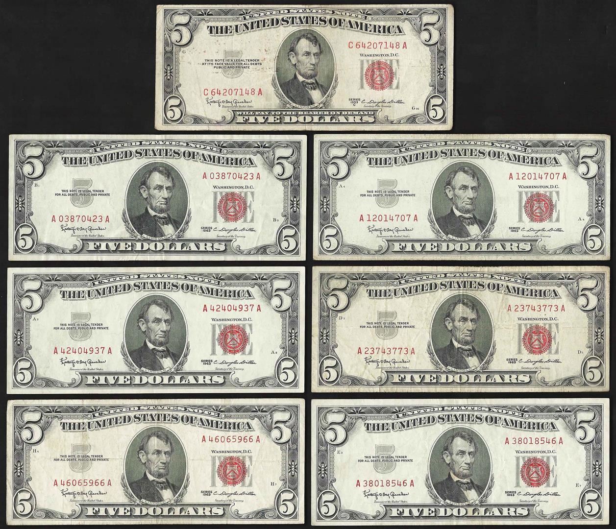 One Lot of (7) 1953 & 1963 $5 Legal Tender Notes.