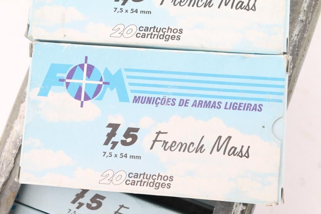 Approx. 260 rounds of 7.5 X 54mm French Mass factory new ammunition. Made for FNM by Munições de Armas Ligeiras in Portugal, 139 Gr. FMJ, all in 20 rd factory boxes.