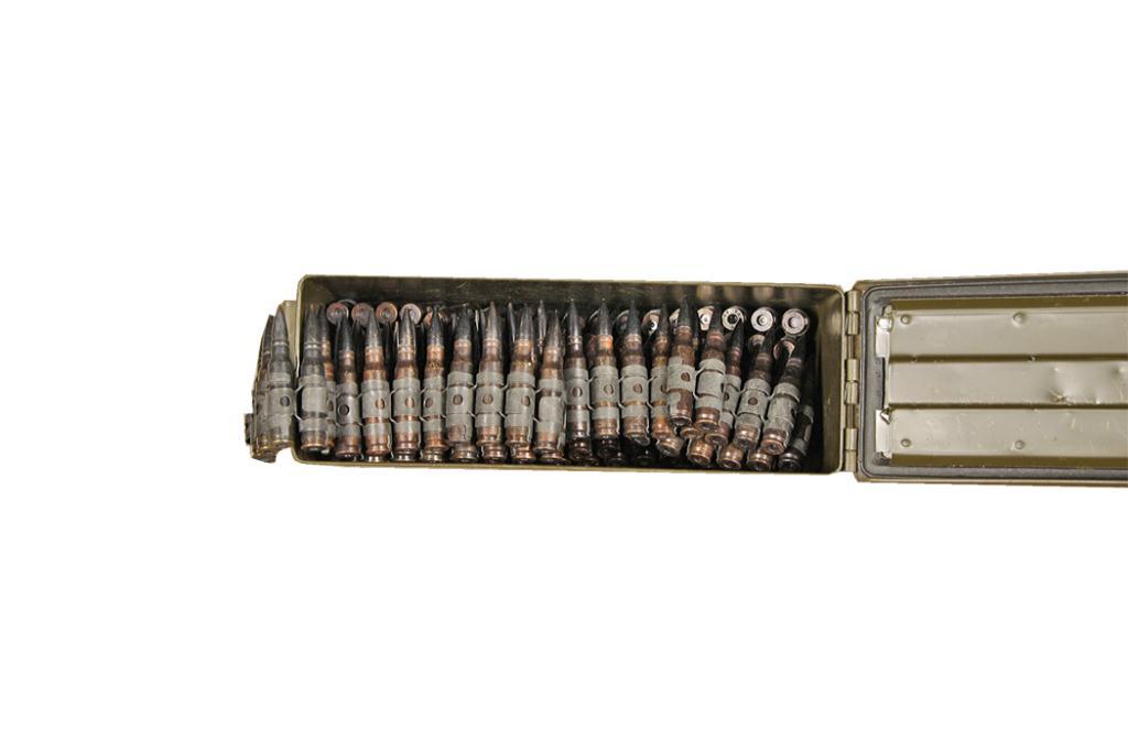 Lot of 7.62 Machine Gun Dummy Rounds Interesting lot of 200 dummy (inert loaded) cartridges of 7.62 MM ammo in the M172 links. Usage unknown but an interesting lot contained in its original military green can.Interesting lot of 200 dummy (inert loaded) cartridges of 7.62 MM ammo in the M172 links. Usage unknown but an interesting lot contained in its original military green can.