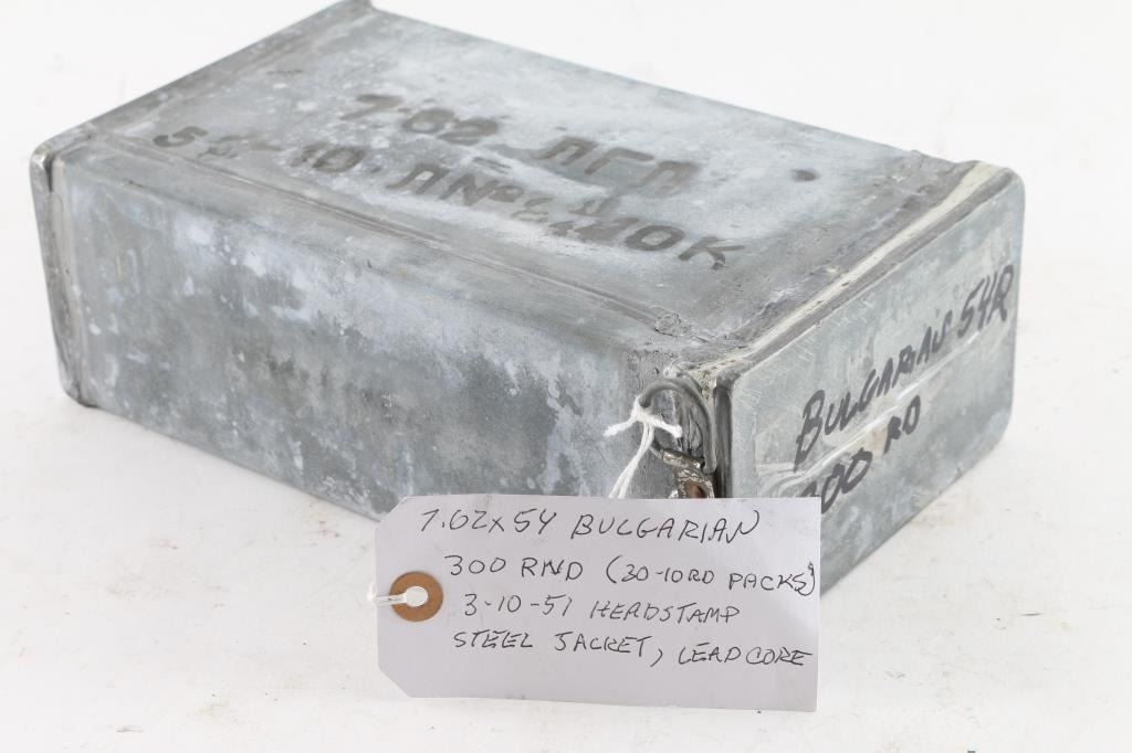 Lot of 7.62 X 54R ammo in sealed can (unopened). 300 rounds of Bulgarian steel jacket, lead core. weighs approx. 16 lbs.
