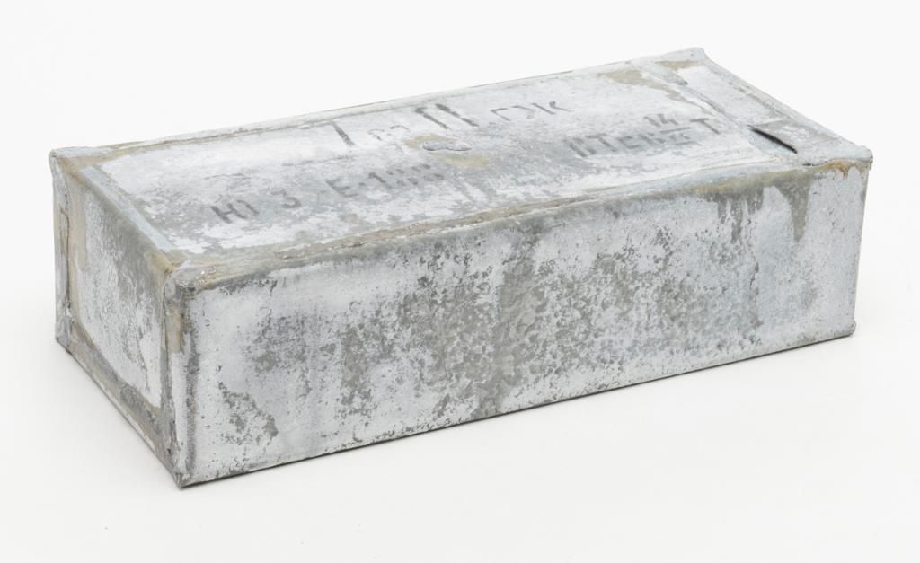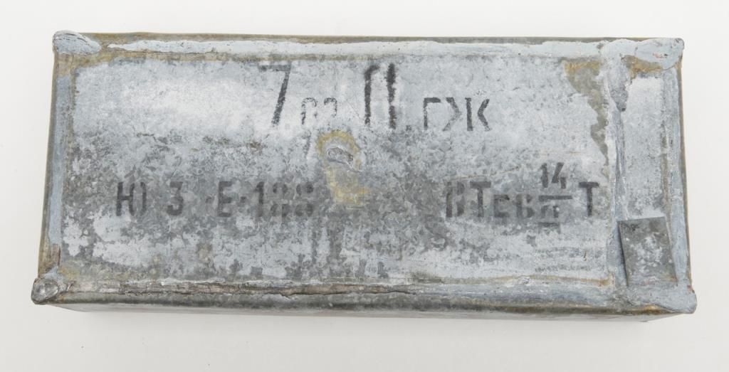 Lot of 7.62mm ammunition in a sealed can from an Eastern European arsenal. The container does not indicate the number of rounds contained within. Est.: $200-$400.