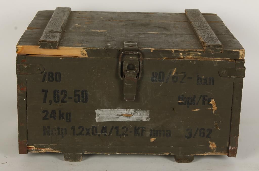 Includes 780 rounds in sealed metal container inside wooded crate.