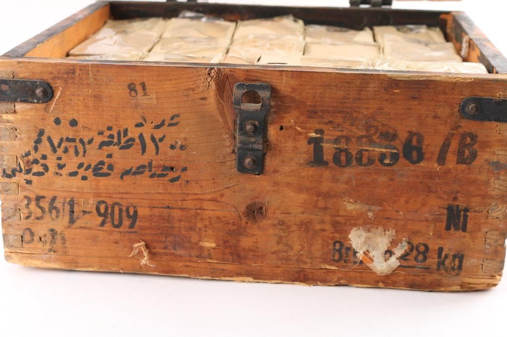 Approx. 705 rounds of 7.65 X 54mm ammunition. Possible Turkish made, in boxes of 15, all in wooden crate w/Arabic writing.