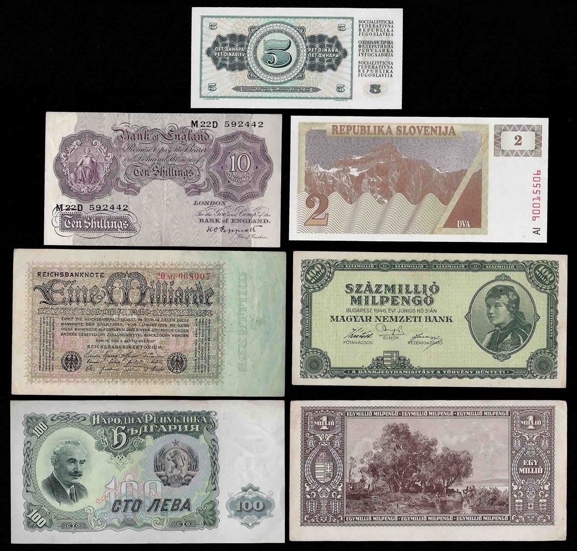 One Lot of (7) Assorted Europe Notes.