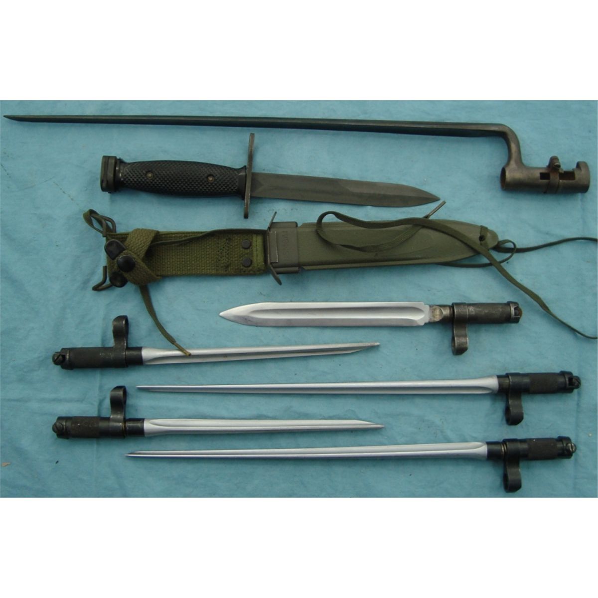 5 SKS style folding bayonets, a US 45-70 bayonet & USM7 Carbine bayonet.