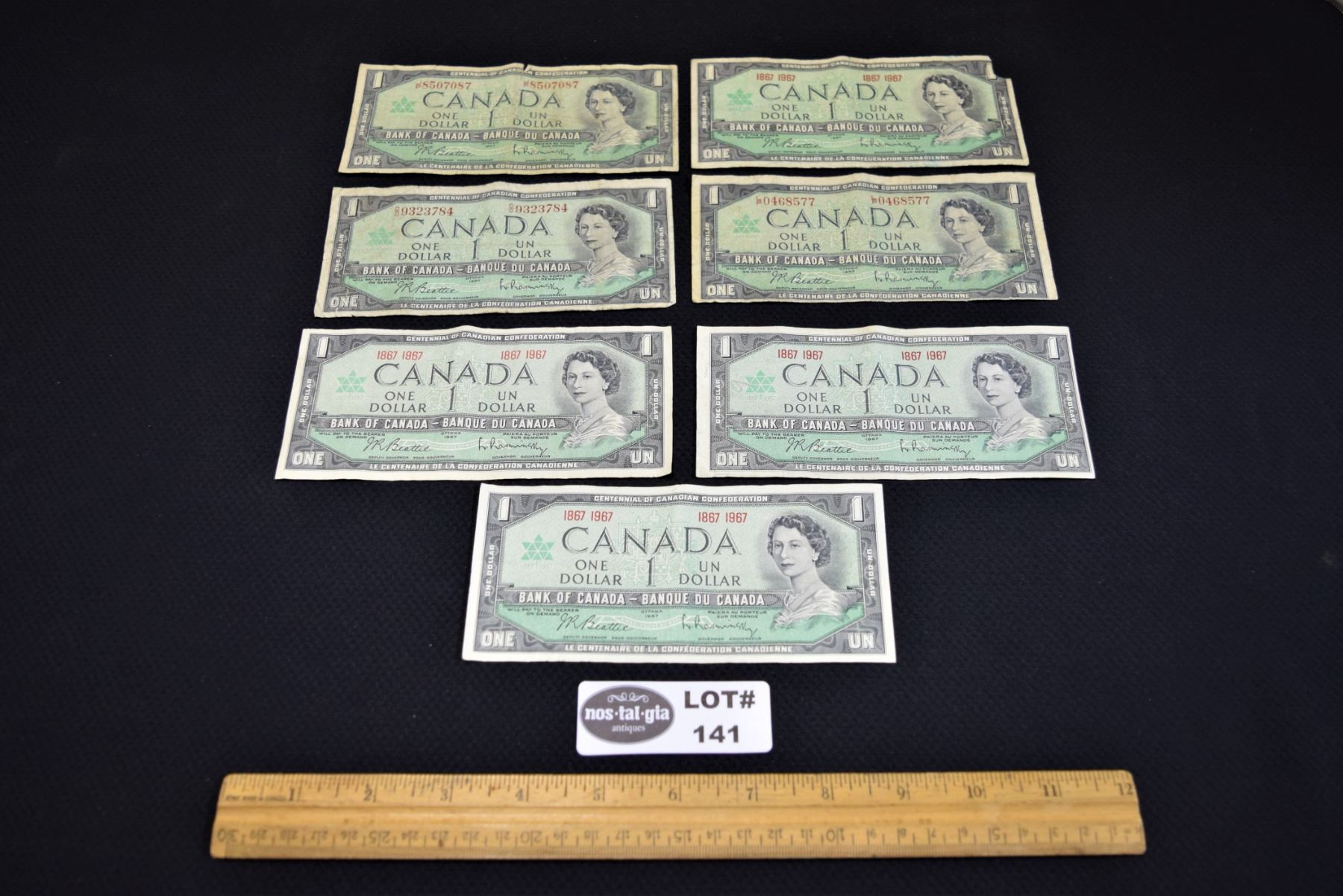 Lot of 7 CanadianCentennial $1.00 (One) Dollar Bills