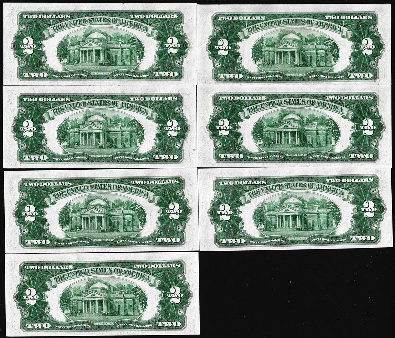 One Lot of (7) Consecutive 1928F $2 Legal Tender Notes.