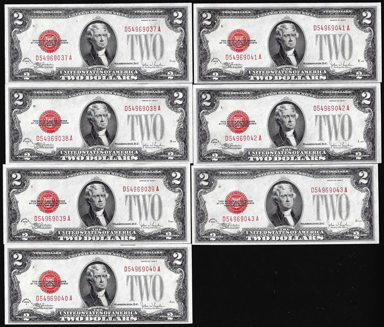 One Lot of (7) Consecutive 1928F $2 Legal Tender Notes.