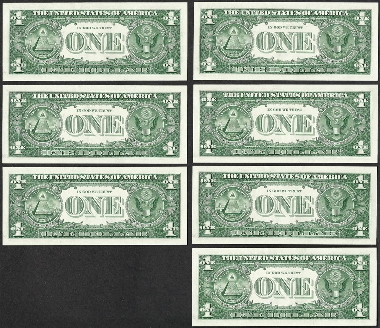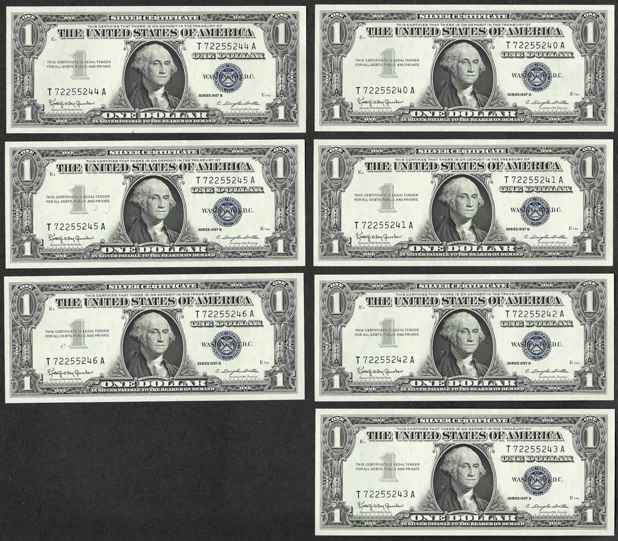 One Lot of (7) Consecutive 1957B $1 Silver Certificate Notes.