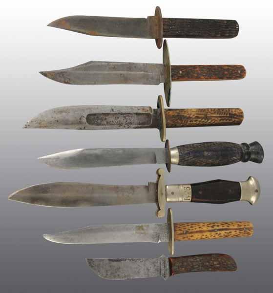 Description Includes five with bone handles, one Sheffield England, and one that is signed. Condition (Excellent). Size Largest: 11" L.