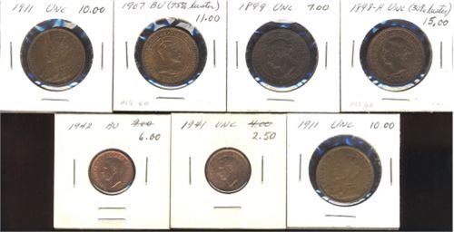Lot of 7 Large & small Cents; 1898H, 1899, 1907, 1911 (2), 1941, 1942. All MS60 or better.