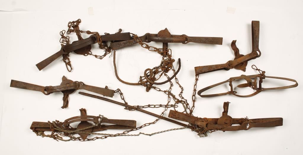 Lot of 7 Leg-hold Animal Traps, Victor.