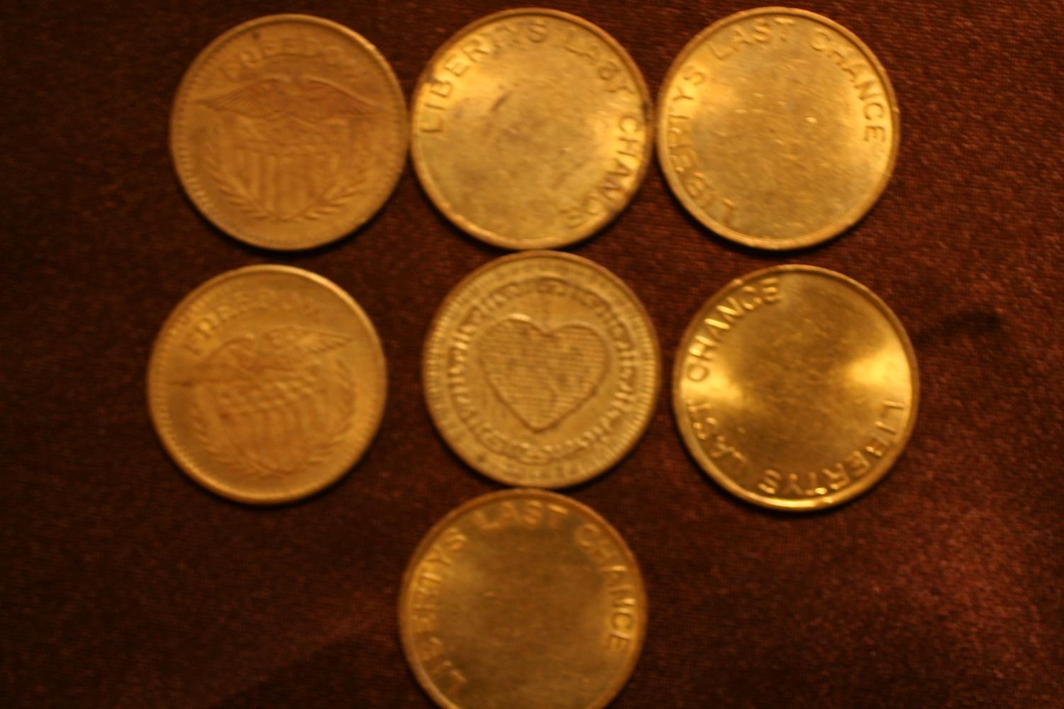 Up for your consideration is a lot of 7 liberty tokens. Please study the picture carefully before you place your bid. I am not a professional coin dealer or grader.