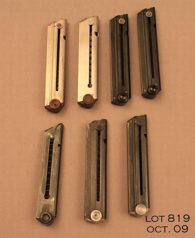 Lot of 7 Luger magazines, one Erma .22 cal., two plastic base, two aluminum base, and two wooden base mags. Est. $200-$400.