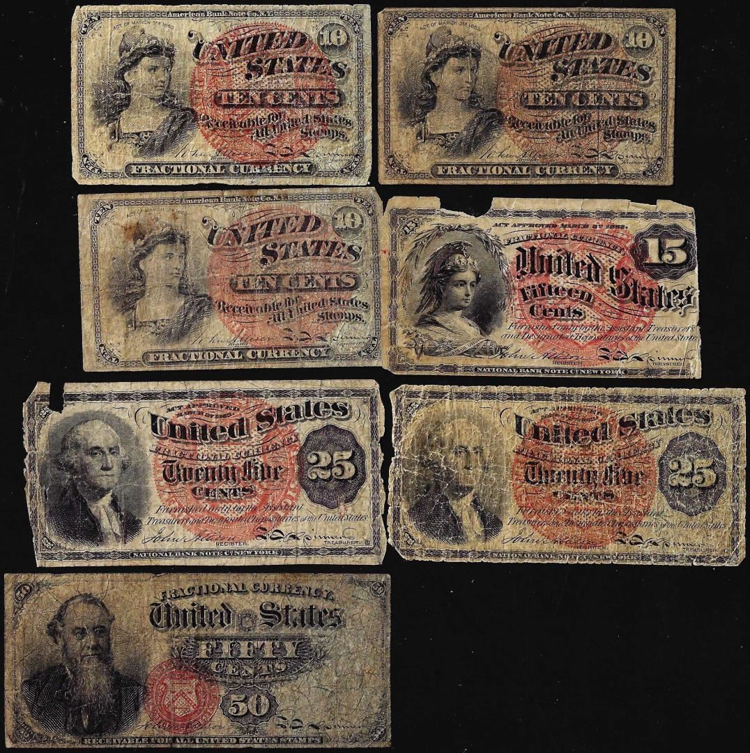 Lot of (7) March 3, 1863 Fourth Issue Fractional Currency Notes