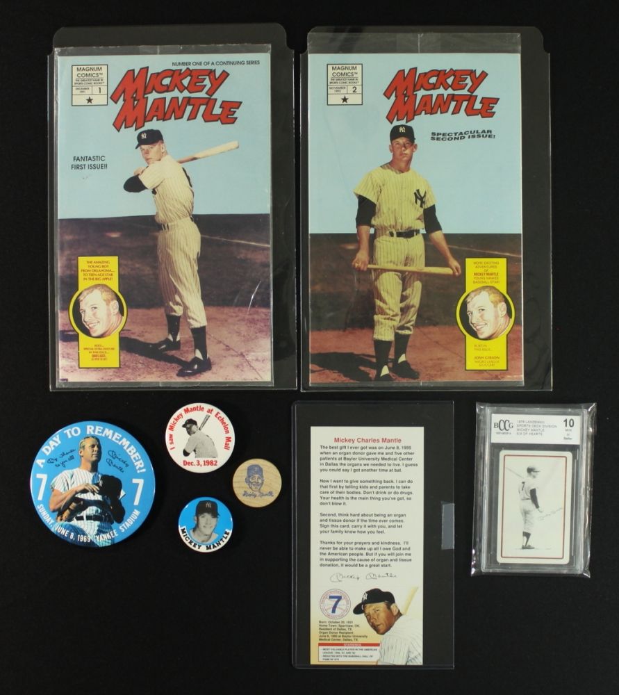 Lot includes three buttons, two comic books, a graded card and an Organ Doner advertisement. Please see photo lot for details.