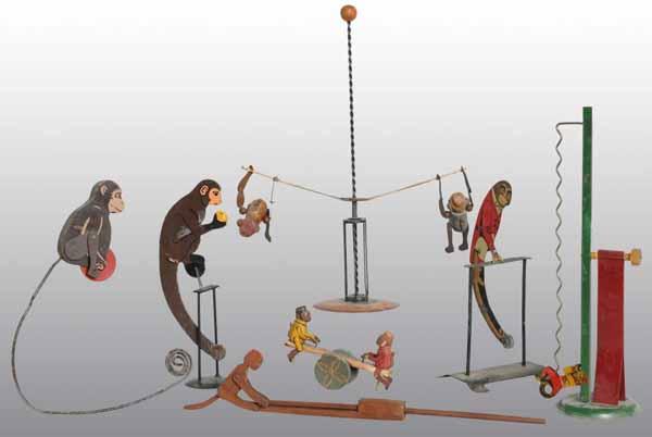 Description American. Toys are made of wood, tin, and pressed steel. Four balancing stands are included. All stands REMOVED from this lots. Condition (Very Good). Size Largest: 17" T.