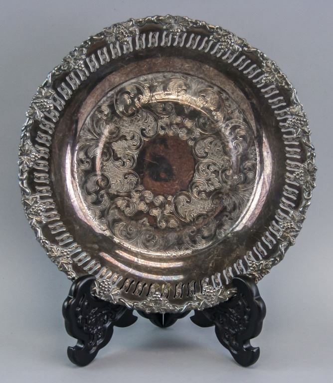 Lot of 7 plates, serving trays, and sugar bowls. Stamped "WMA ROGERS OLD ENGLISH REPRODUCTION" on base. 6.5 x 53 cm. 3 kg.