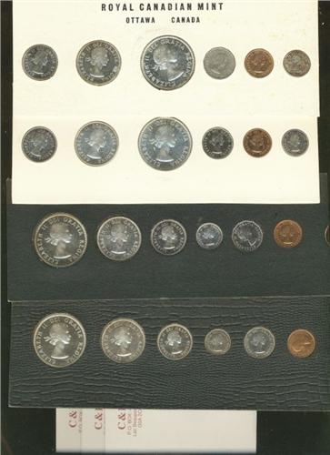 Lot of 7 Proof-like sets; 1960 one with cello. Some silver coins have a CAMEO contrast.