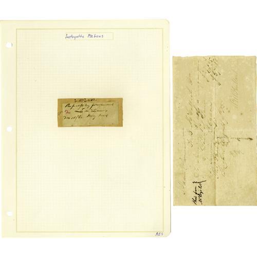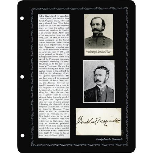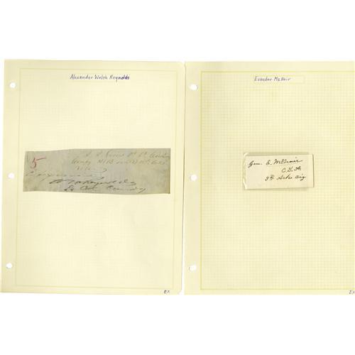 <B>Group Lot of Seven Scarce Confederate Generals' Autographs</B></I> consisting of: <BR><B>John McCousland</B></I>- War-date August 7, 1861 transfer order signed by him, with his then-rank of colonel. McCousland was the next-to-last surviving C.S.A. general. He died in 1927 at age 91. <BR><B>Ben McCullough</B></I>- Signed receipt with nice display presence. <BR><B>Lafayette McLaws</B></I>- War-date November 15, 1862 clipped note with his signature and rank. <BR><B>Evander McNair</B></I>- Autograph card with "<I>C.S.A. 3rd Ark. Brg.</B></I>" written. <BR><B>Alexander W. Reynolds</B></I>- Clipped portion of war-period order, signed with his then-rank of Lieutenant Colonel. <BR><B>Theophilus Hunter Holmes</B></I>- Clipped portion of note in his hand & signed. <BR><B>John B. Magruder</B></I>- Signed autograph card.<BR><BR><b>Shipping:</b> Small Flat (<a target="_blank" href="http://www.heritageauctions.com/common/shipping.php">view shipping information</a>)