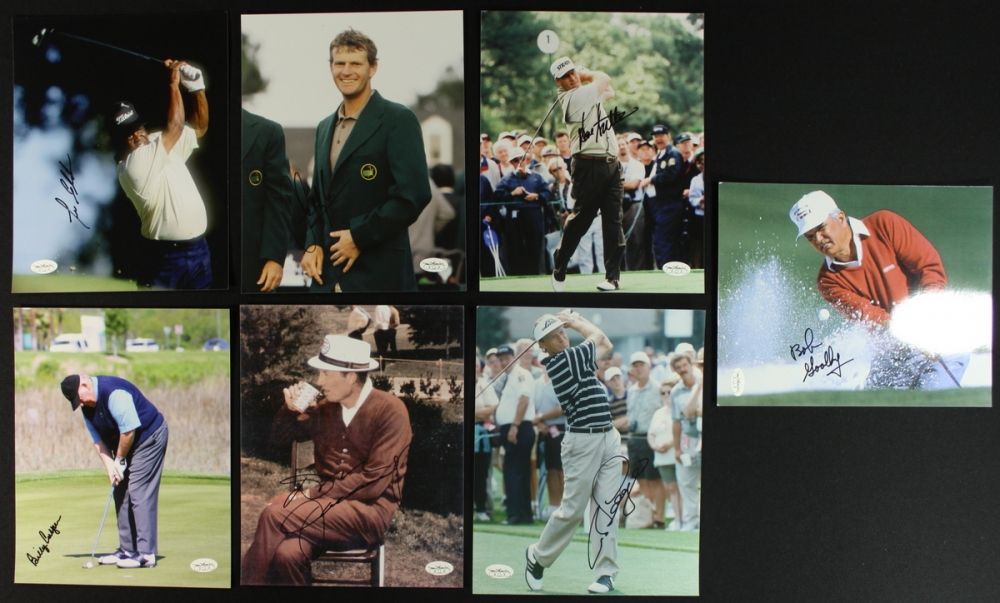 Lot includes Lee Elder, Sandy Lyle, Hal Sutton, Billy Casper, Bob Goalby, Don January and Berhard Langer. The autographs include a James Spence Authentication (JSA) Hologram for authenticity purposes.