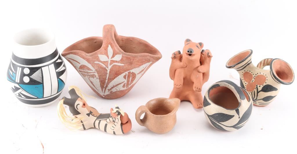 Some pieces are Acoma; one is made in Mexico. Measuring 2" to 5 1/2".