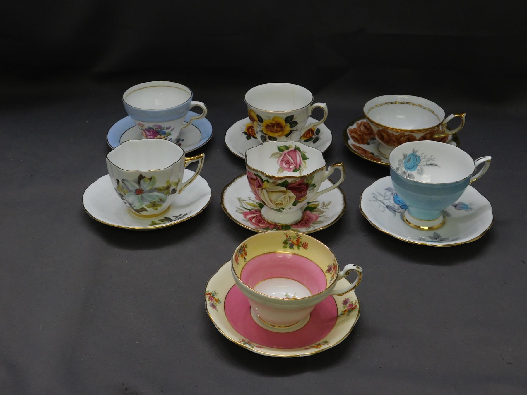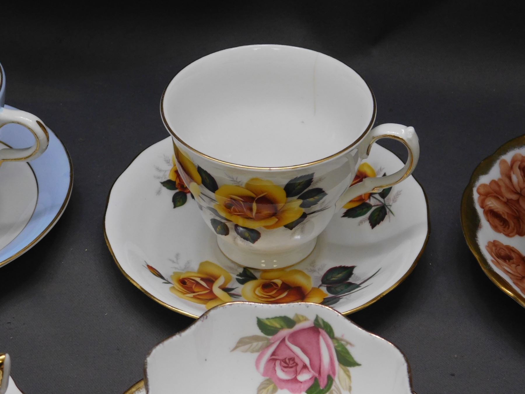 Lot of 7 Tea Cups and China, Windsor, Queen Anne, Foley, Royal Standard, Staffordshire