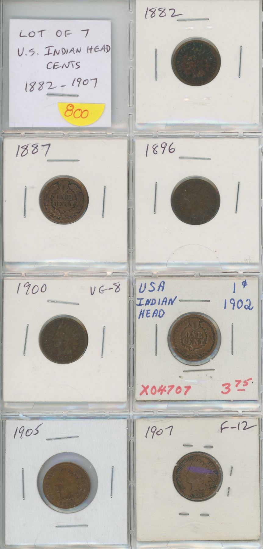 Lot of 7 US Indian Head Cents asst years 1882-1907