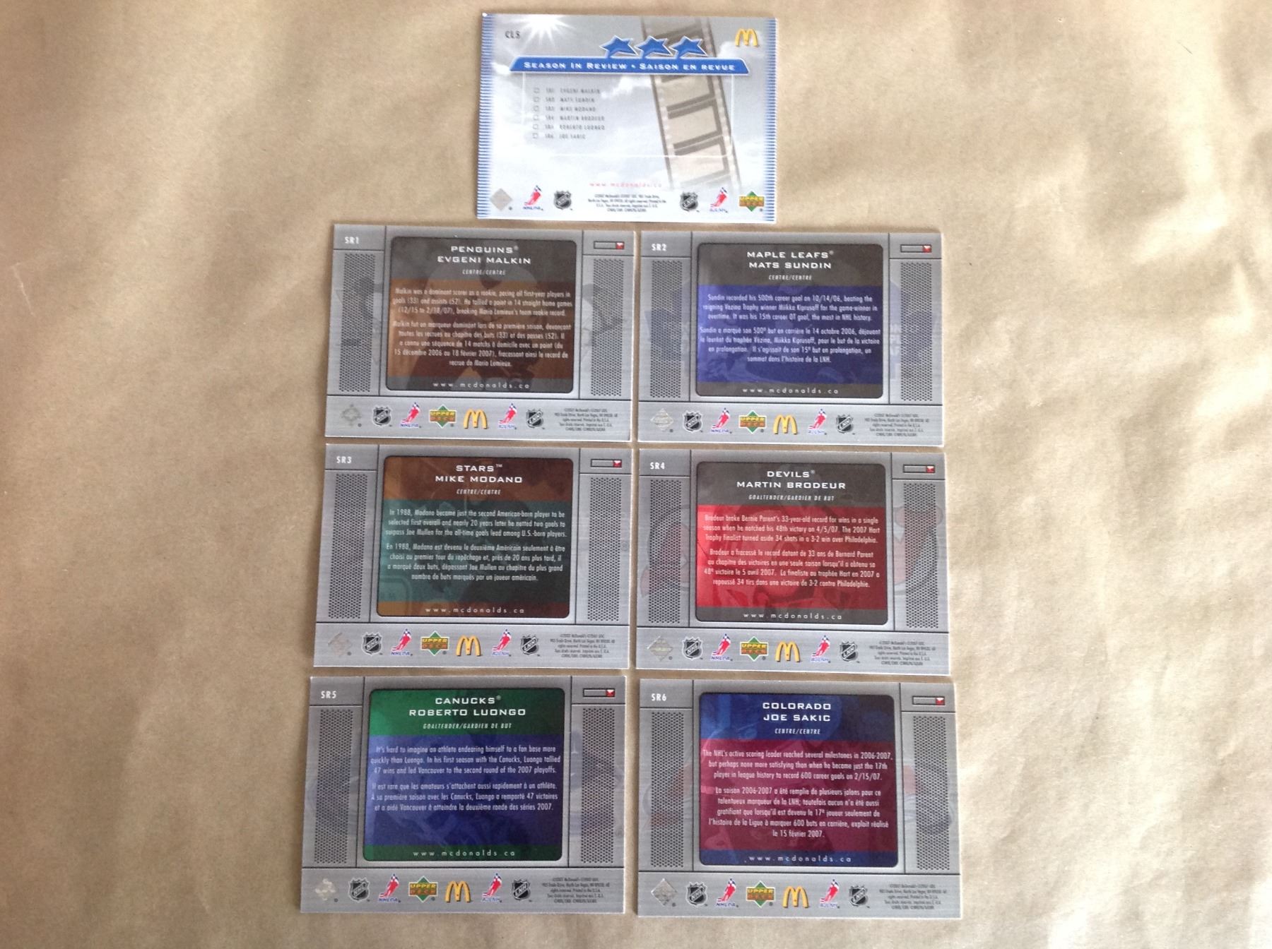 2007 "Season In Review" Set of 6 Hockey cards & check list