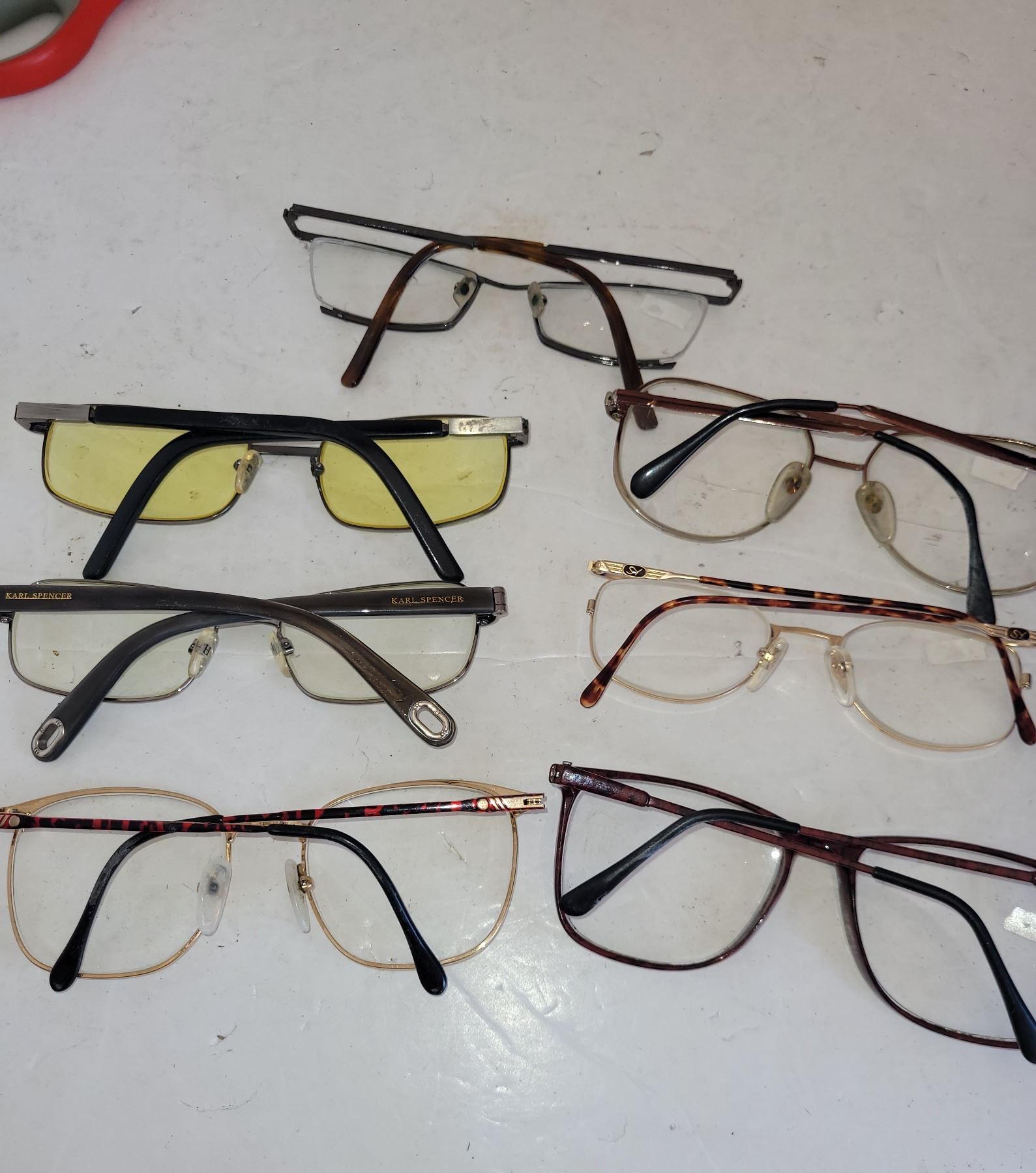 Lot of 7 Vintage Eyeglass Frames + 2 Sets of Flasies