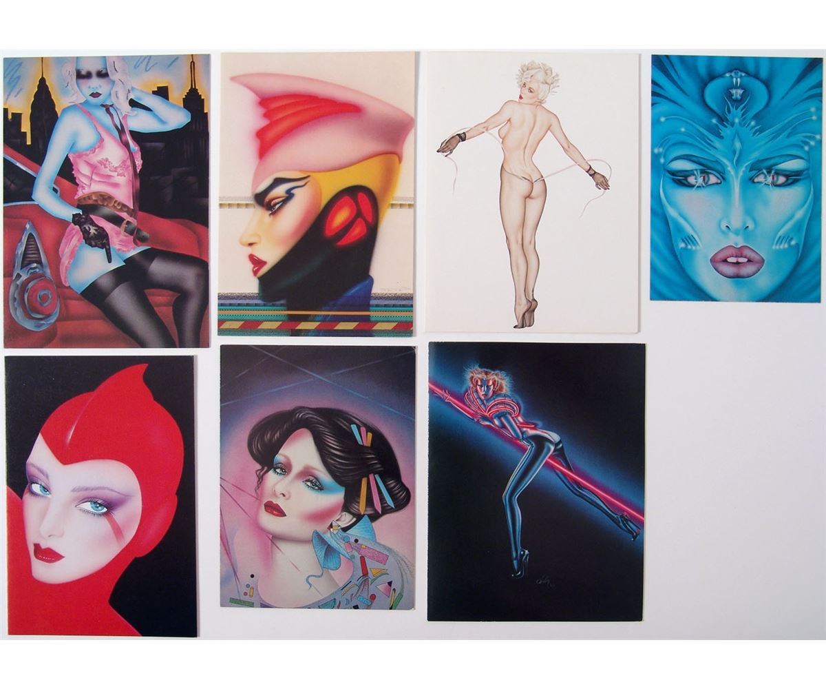 This is a lot of 7 vintage 1970s - 1990s (most are from the 1980s) postcards and greeting cards. Includes cards by artists Olivia and Sato. SIZE: Approx. 4" x 6" to 5" x 7" each. **MORE nude/risque cards from 1950s to 1990s (risque, nude, art sci-fi, oddities) in this and future auctions. From the estate of a big collector who traveled the world and had some very scare paper items. Many postcards from small independent underground printers in Germany, Holland, France, UK, etc.