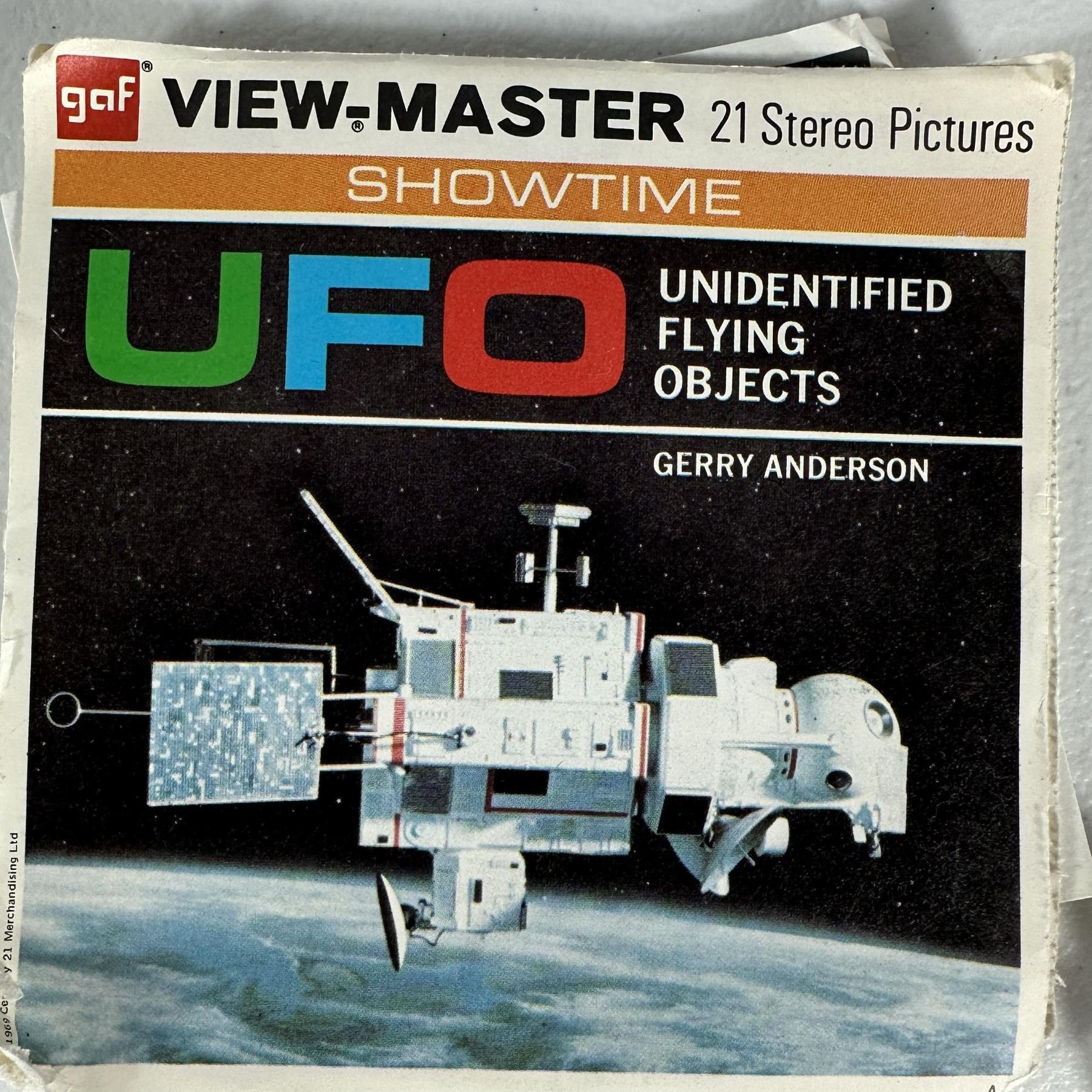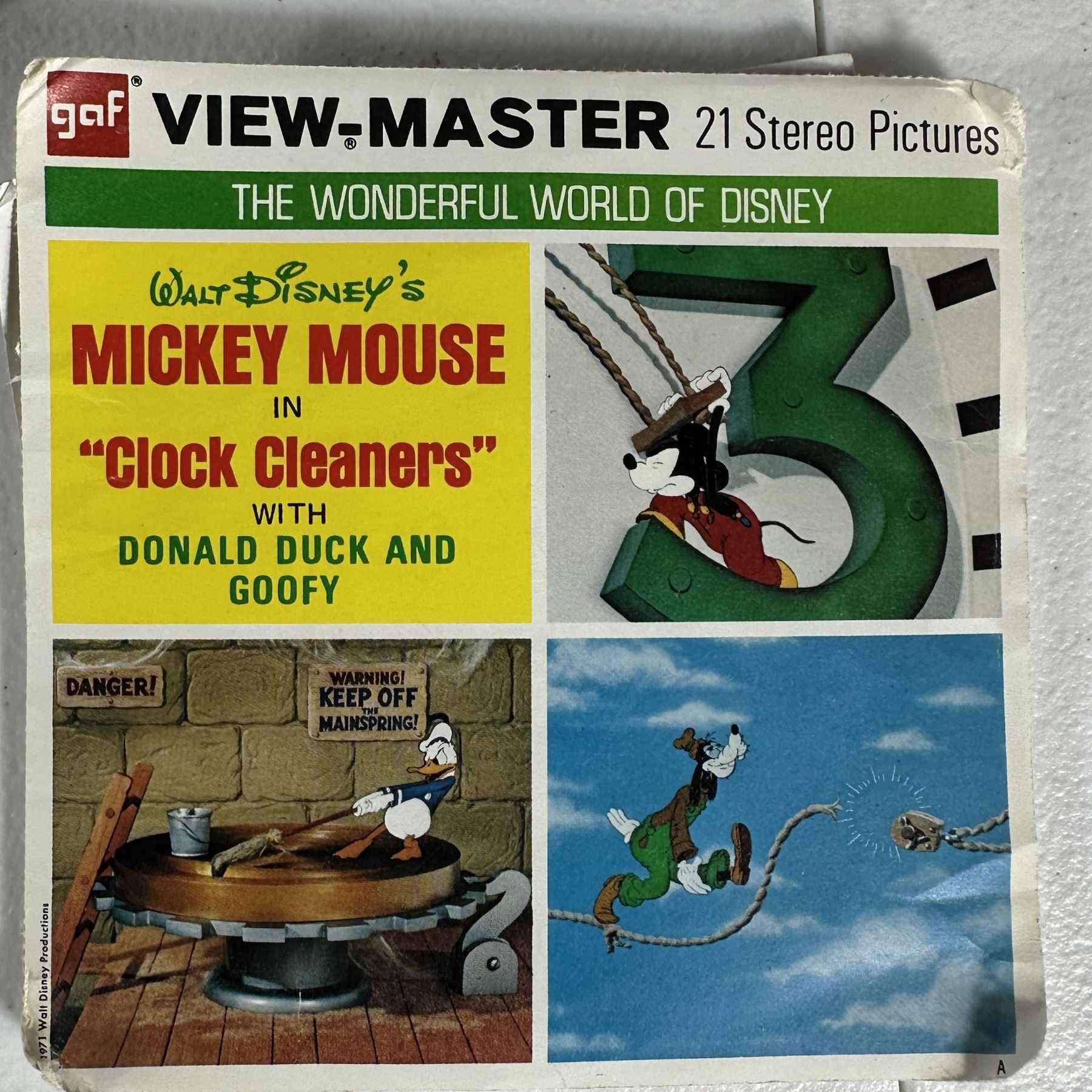 Mixed lot of original GAF View-Master reels with sleeves, featuring themes such as Shazam, Scooby-Doo, Mickey Mouse 'Clock Cleaners,' Disney’s Island at the Top of the World, Wind Cave & Jewel Cave, Badlands National Monument, and Gerry Anderson’s UFO. Great assortment of animation, Disney, travel, and science fiction subjects.