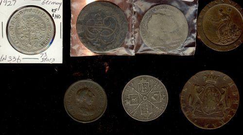 Lot of 7 WORLD COINS. Includes coins from Russia, Great Britain and Germany. Should be viewed.