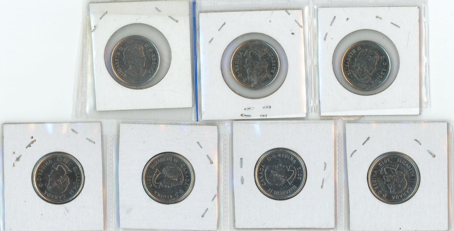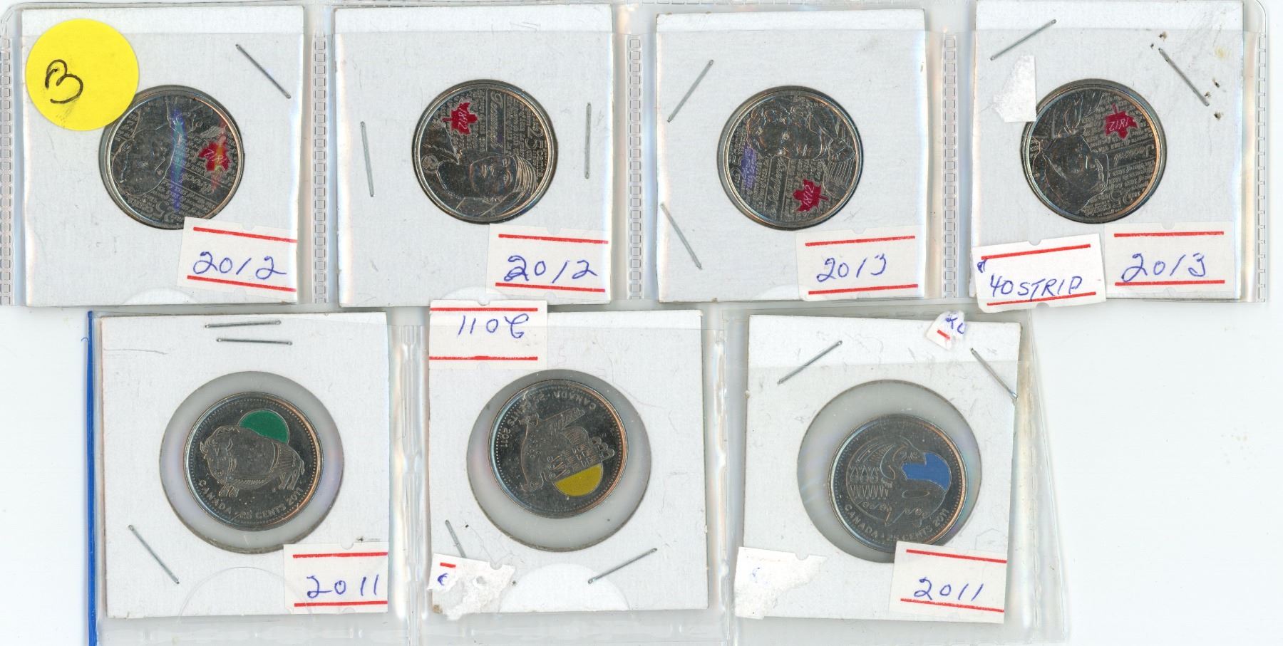 Lot of 7 canadian quarters 2012, 2013 and 2011 ( coloured/ non-coloured)