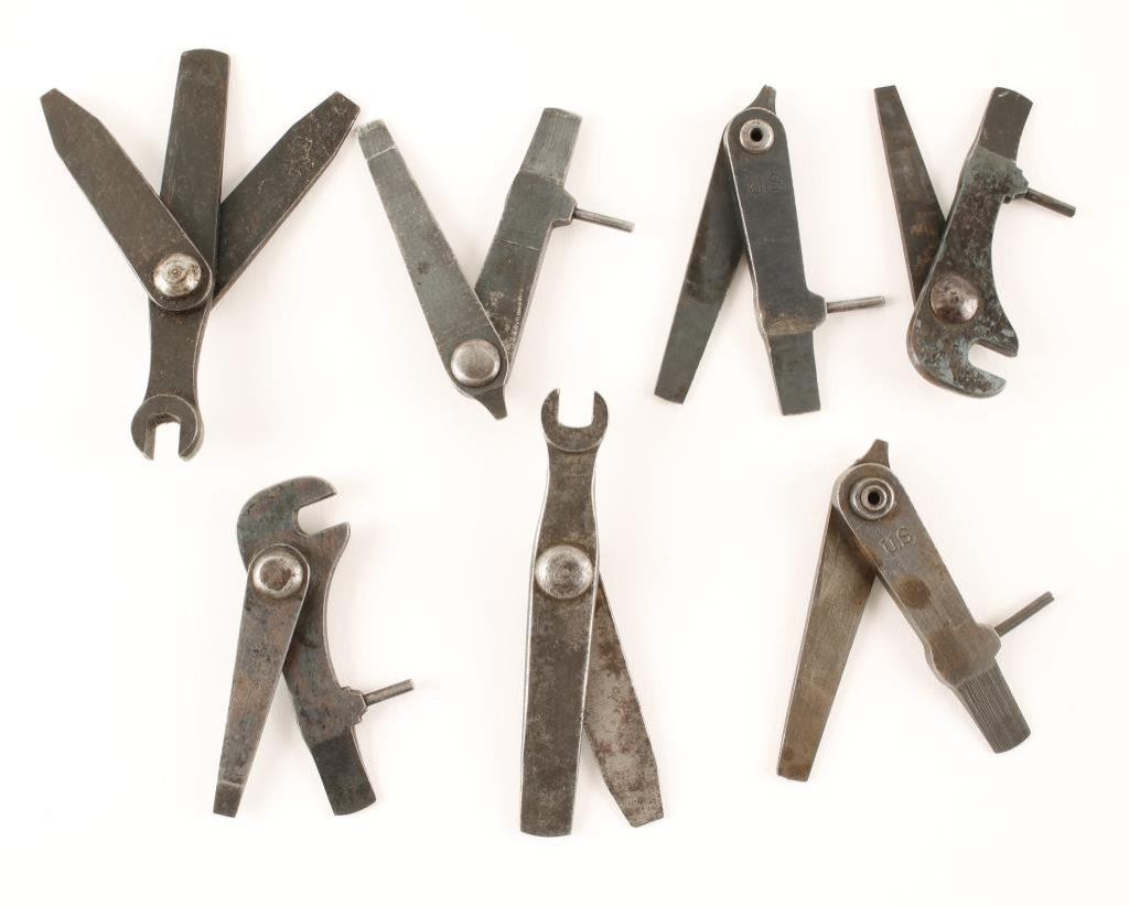 Lot of 7 misc. U.S. military firearm takedown tools including 2 marked “U.S. Model 1879” for the Springfield Trapdoor rifle of the Indian Wars period, 3 for the Springfield Model 1903 and ’03-A3 rifles and 2 U.S. Springfield combination tool and spanner wrenches. Est.: $75-$150.