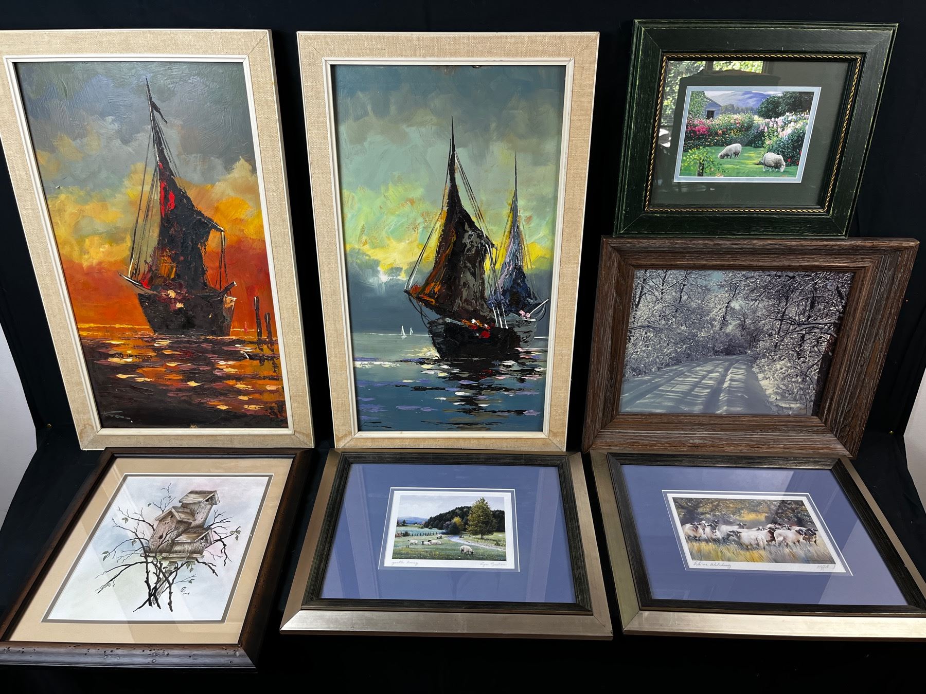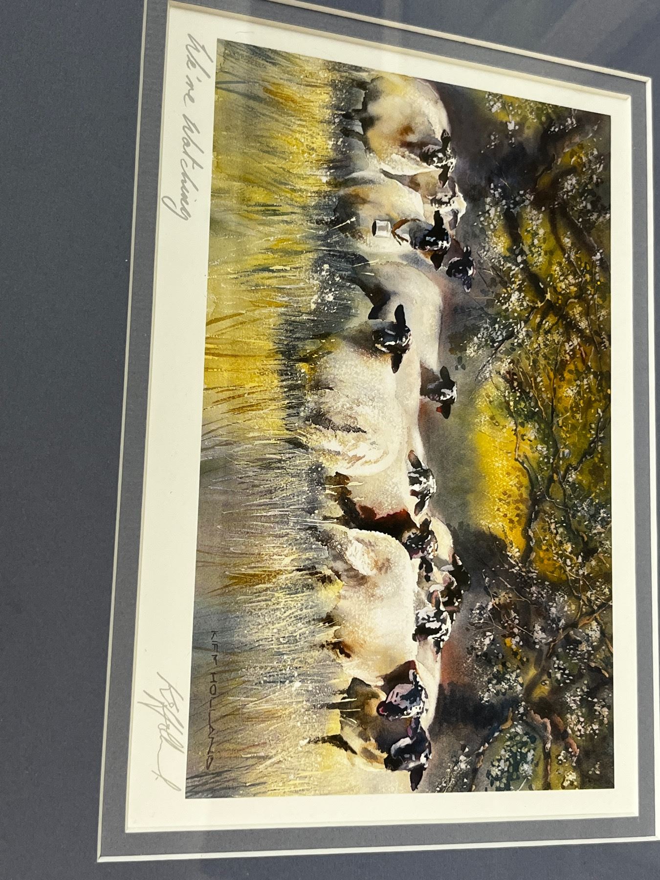 Lyn bastien print "gentle living" & kiff holland "we're watching" prints and 5 mixed thematic artworks.