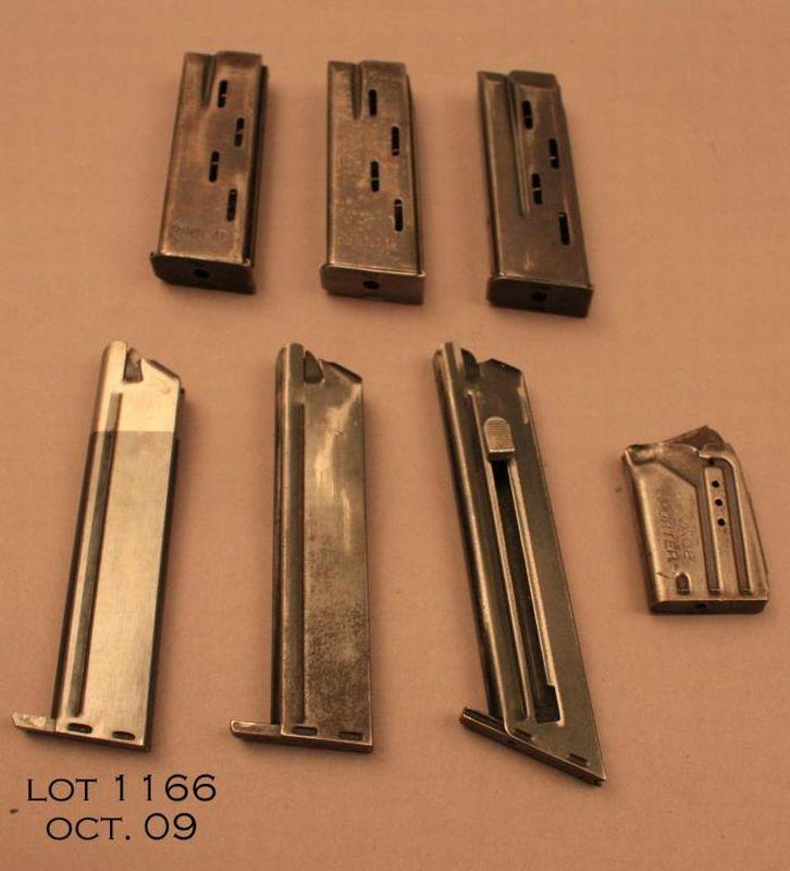 Lot of 7 small cal. magazines including 3 early Colt .22 mags, 3 Savage .380 mags, and one Savage Sporter mag. Est. $75-$150.