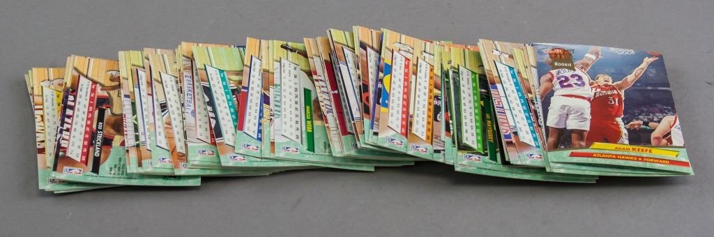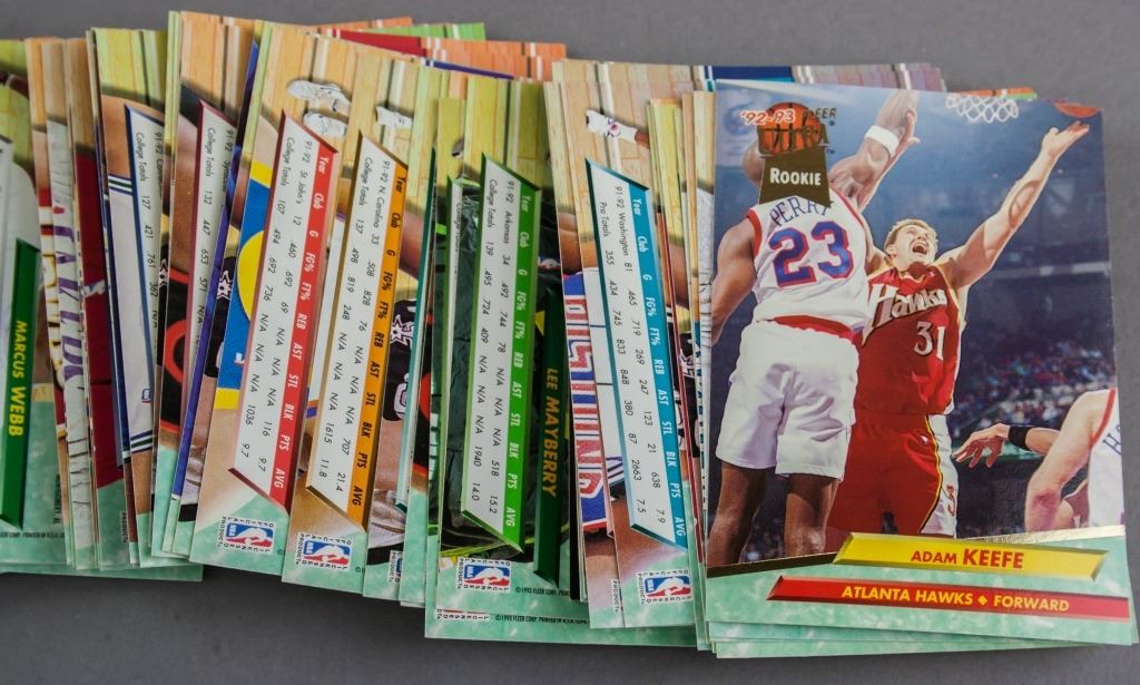 Lot of 70 Fleer collectible basketball cards. Printed 1992-1993. Featuring players such as Adam Keefe and Byron Houston.