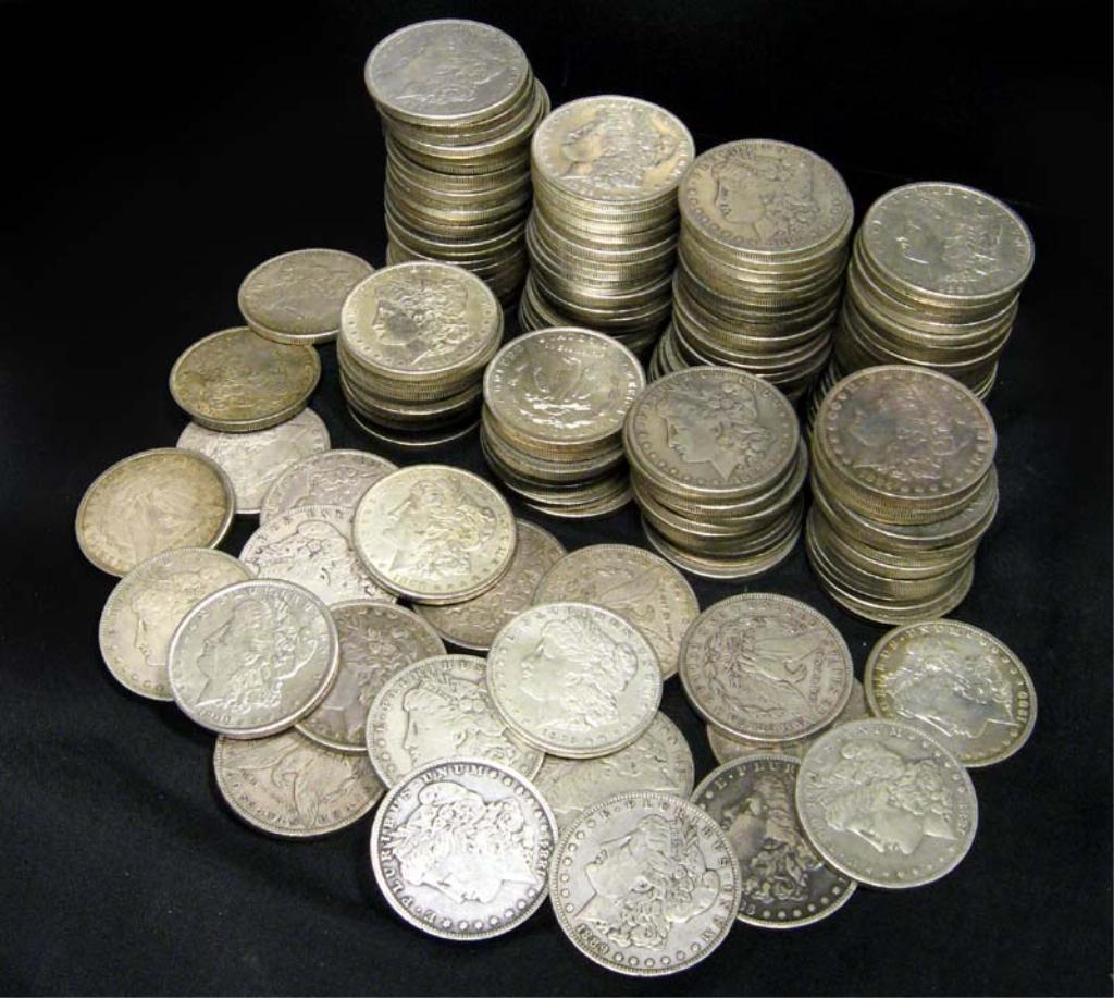 A lot of 70 assorted grades, nints and dates on Morgan silver dollars, unsearched lot. g-au