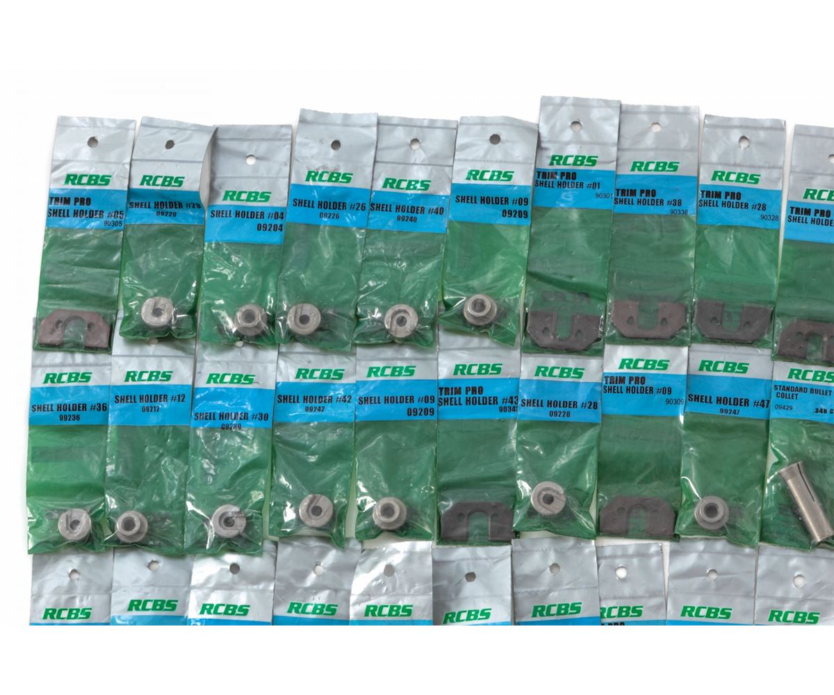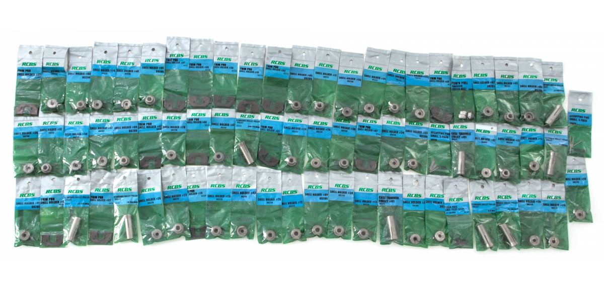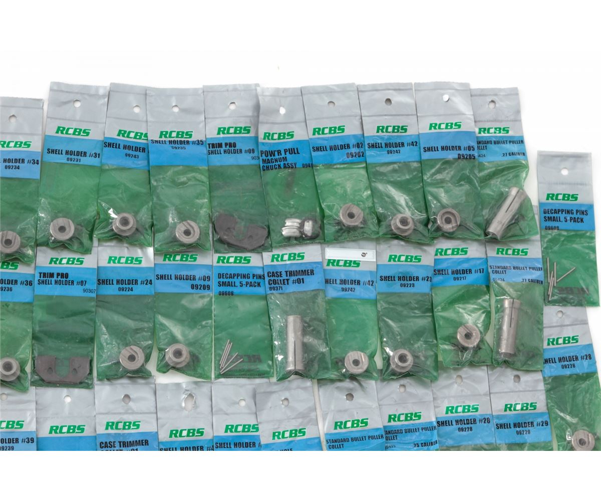 Lot of Approx. Seventy (70) RCBS Reloading Supplies, mostly shell holders #09, #28, #02, #26, #44, #32, #43, etc.; with some bullet pullers and case trimmers. All brand new in original packaging. Retails @ over $550/lot. Est.: $300-$400/lot. (Field Time)