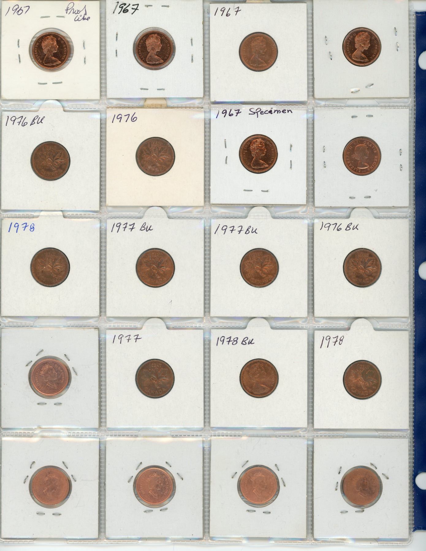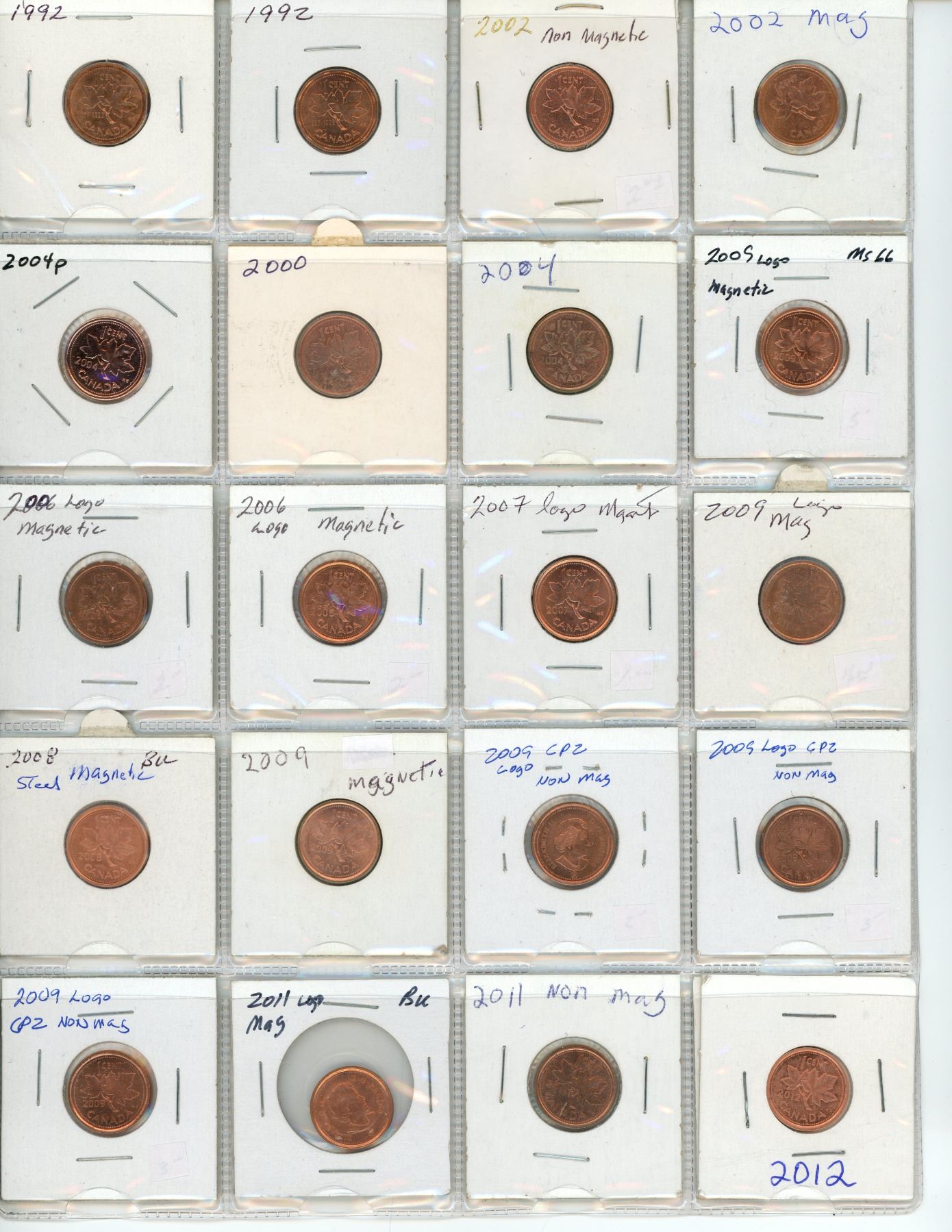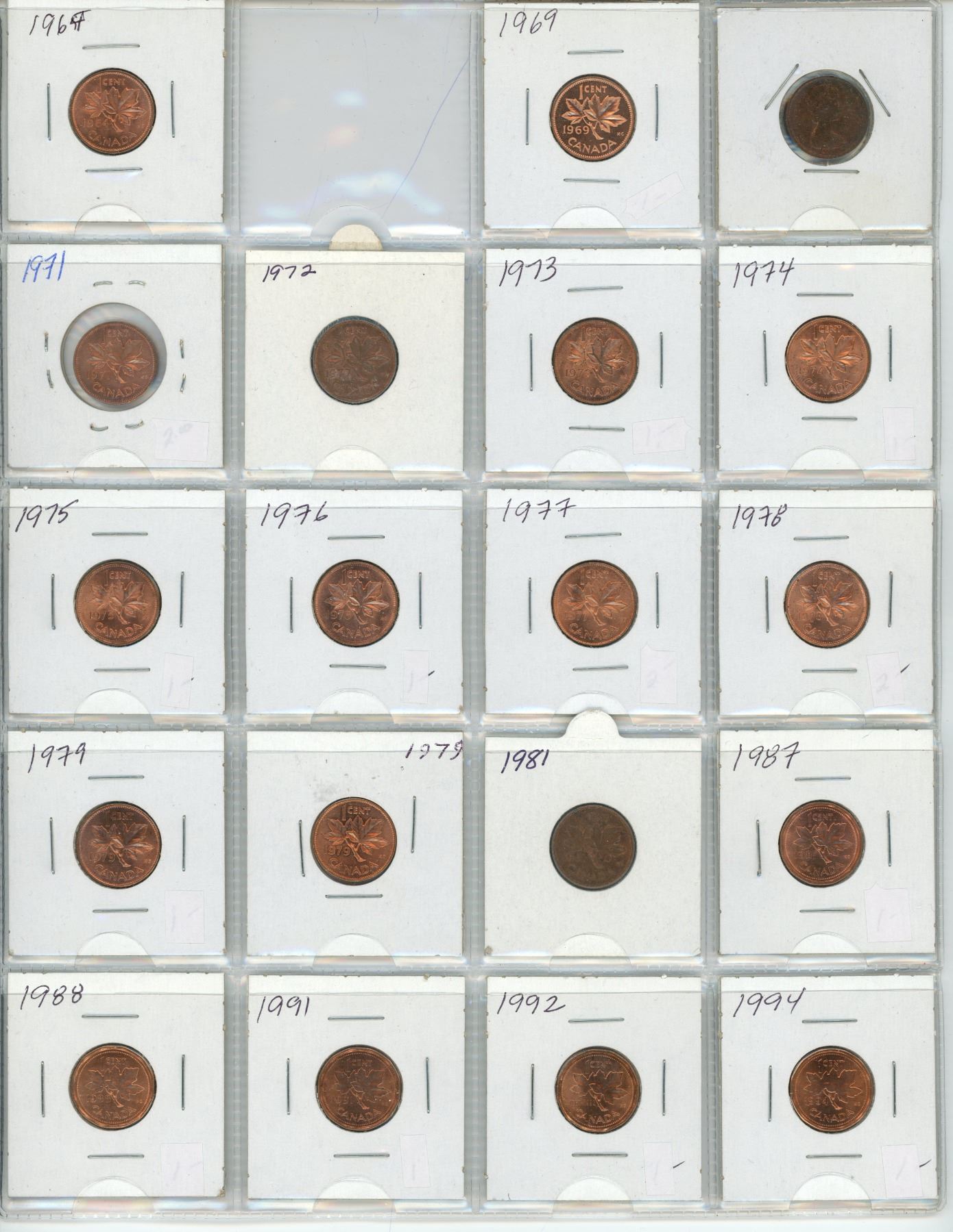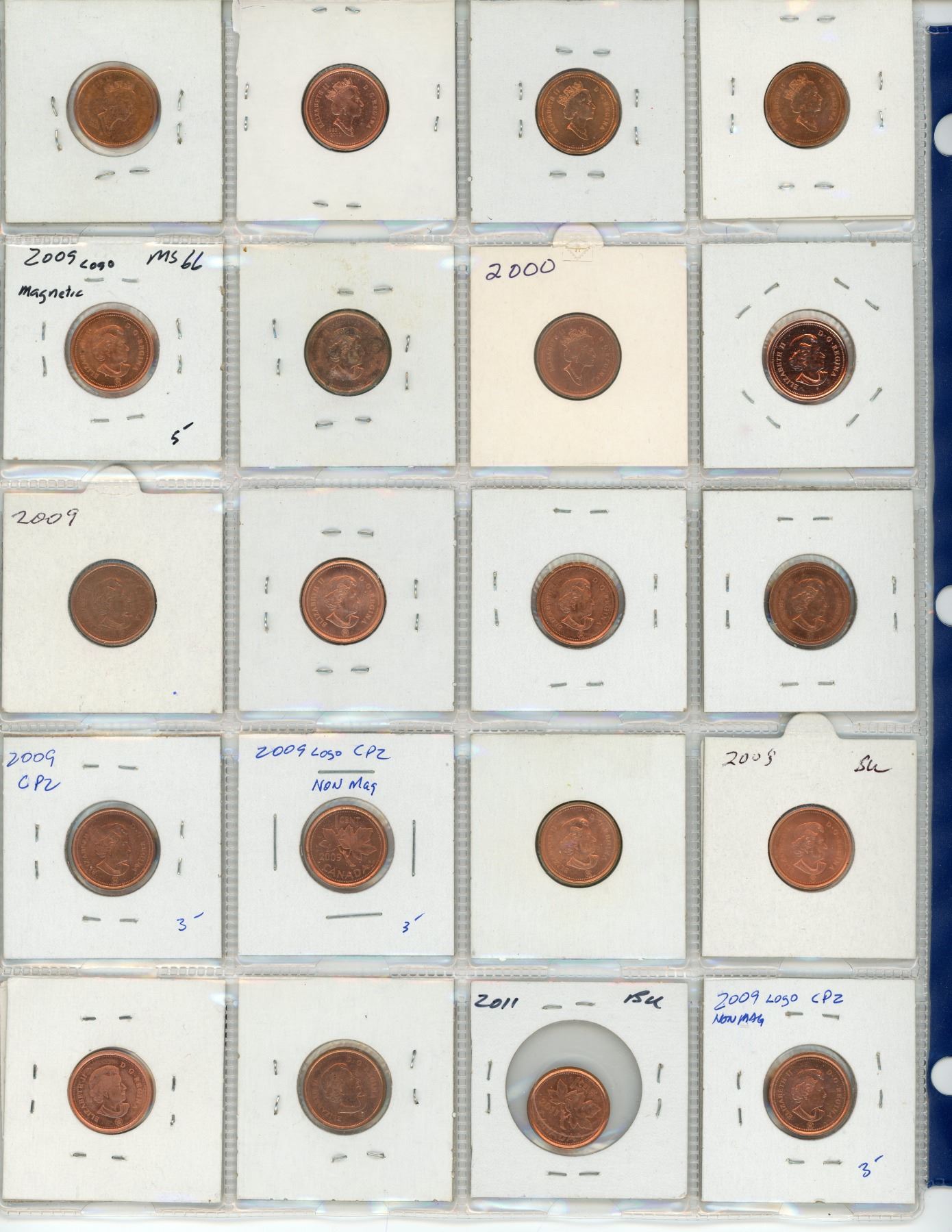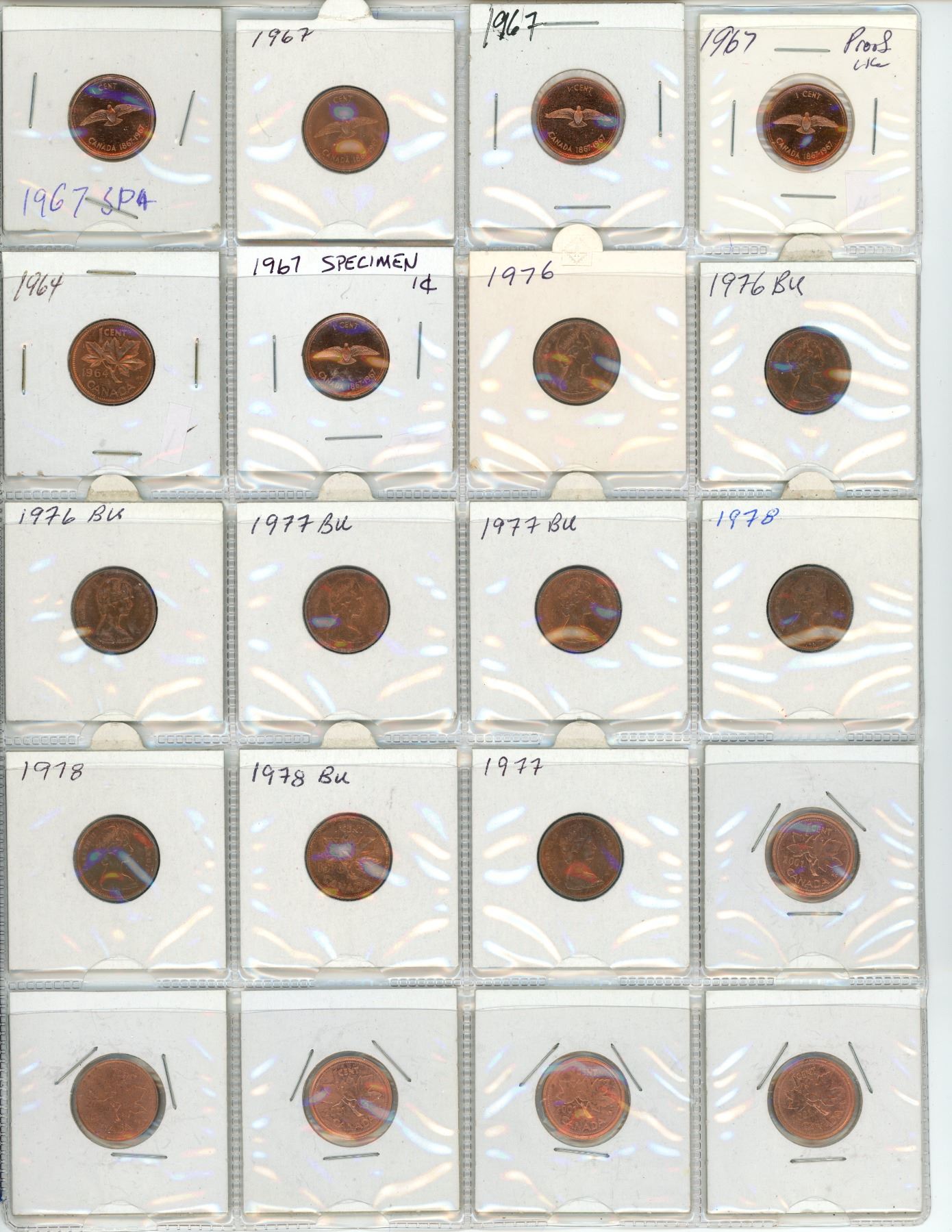 Lot of 79 Canada 1¢; assorted years & multiples 1964 to 2011 (incl. magnetic & non-magnetic varieties)