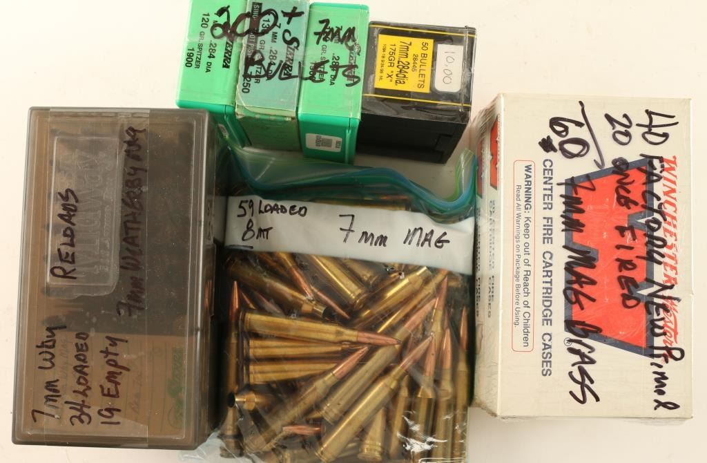 Lot of 7mm Mag. Brass, Reloads & Bullets