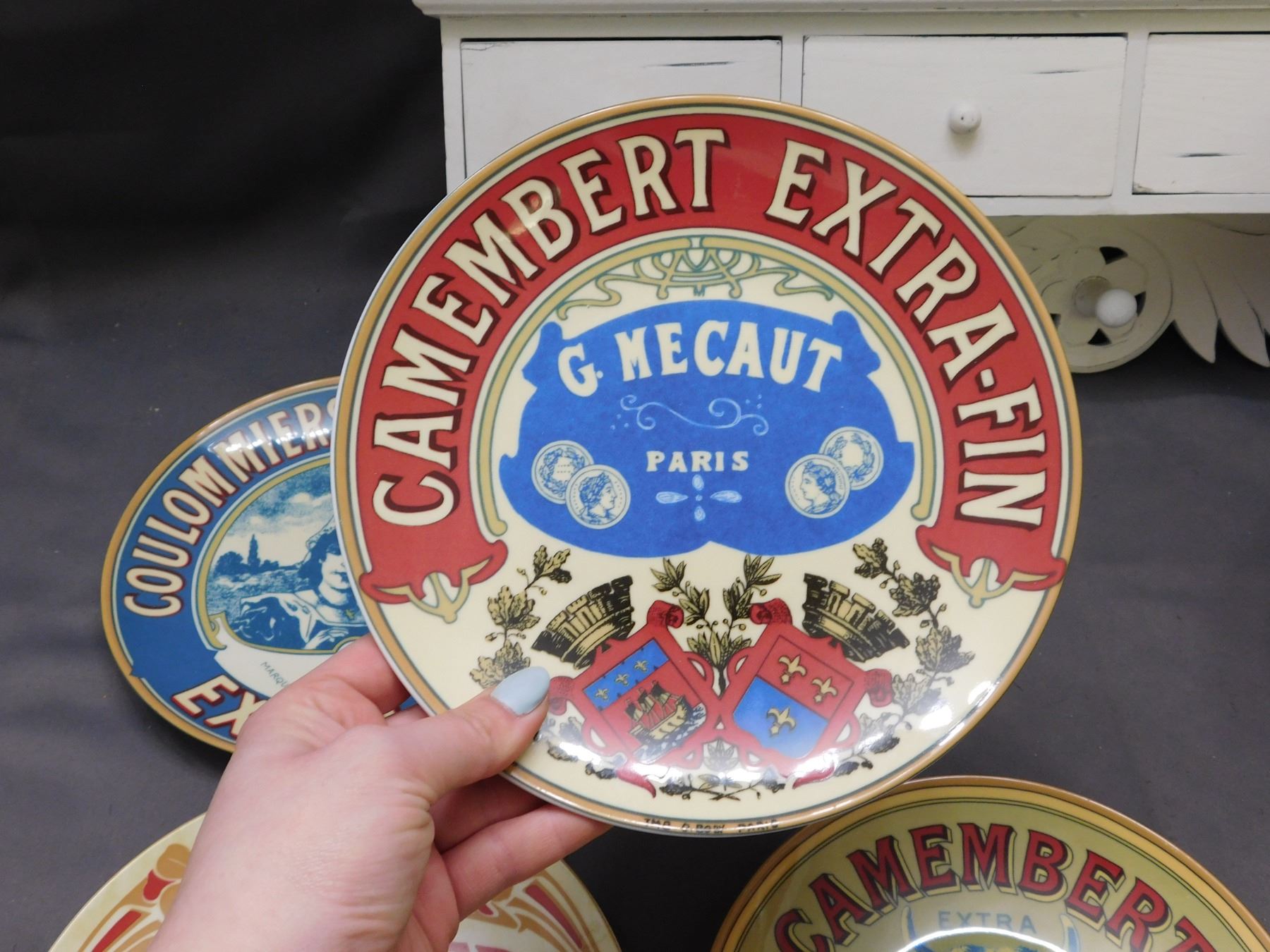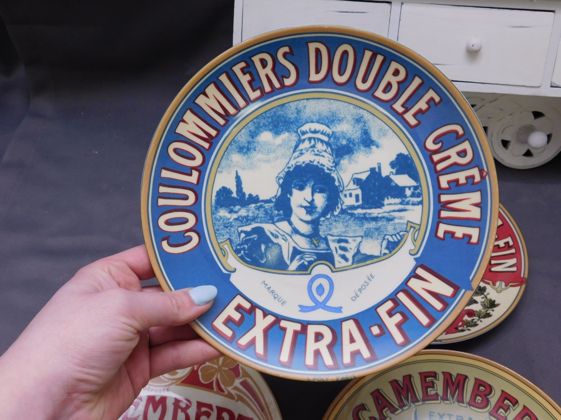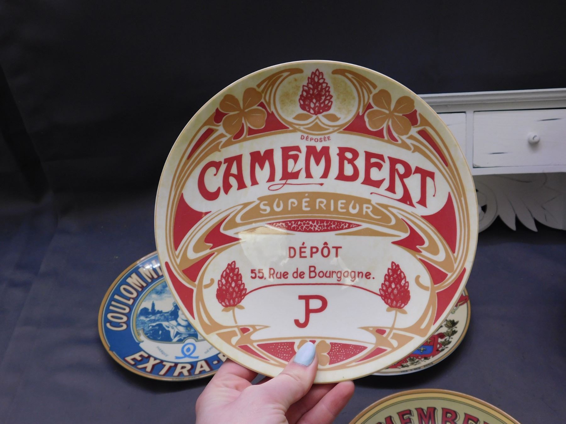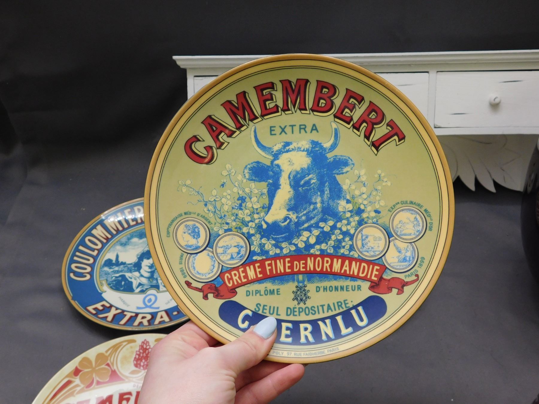 Lot of 7pcs Advertising Plates, Purple Glass Vase, Red Vase, Entryway Coat Hook / Keybox