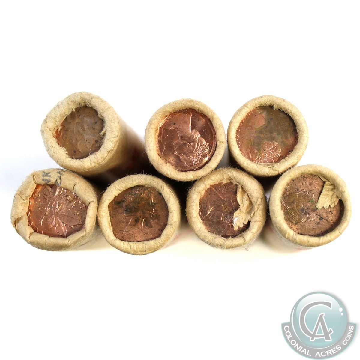 Lot of 7x Canada 1-cent Original Rolls, Except 1967 of 50pcs. You will receive 1x 1967 with unwrapped end, 2x 1968 & 4x double head rolls with unknown dates. 7pcs