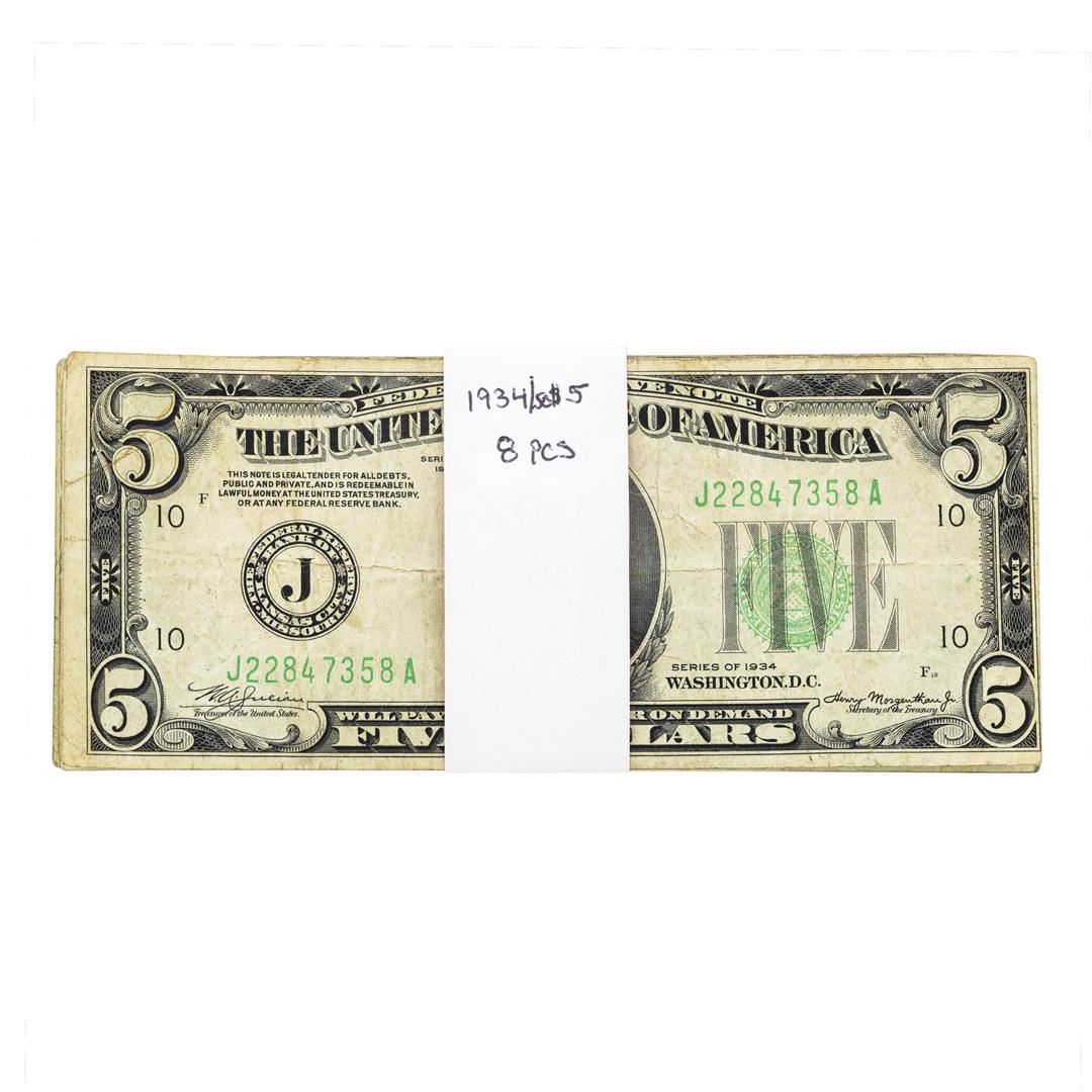 One Lot of (8) 1934/1950 $5 Federal Reserve Notes.