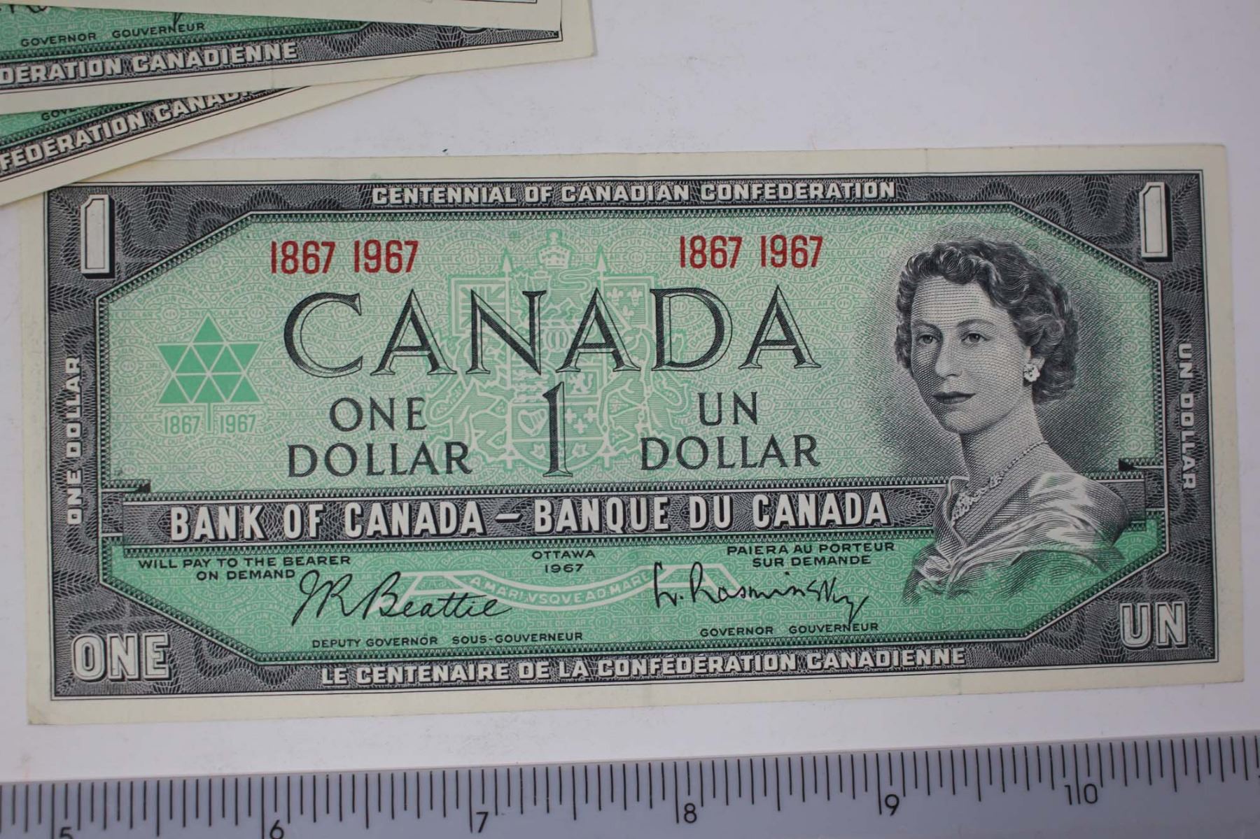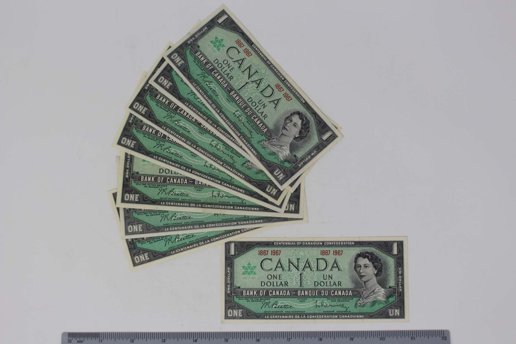 Lot of 8 1967 One Dollar Canadian Bank Notes
