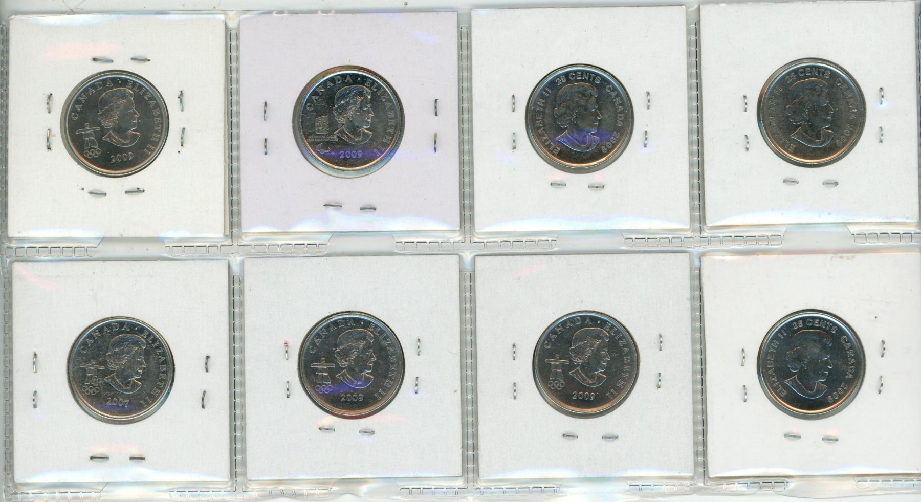 Lot of 8 (2009 and 2007) Vancouver Various Olympics Canadian Quarters