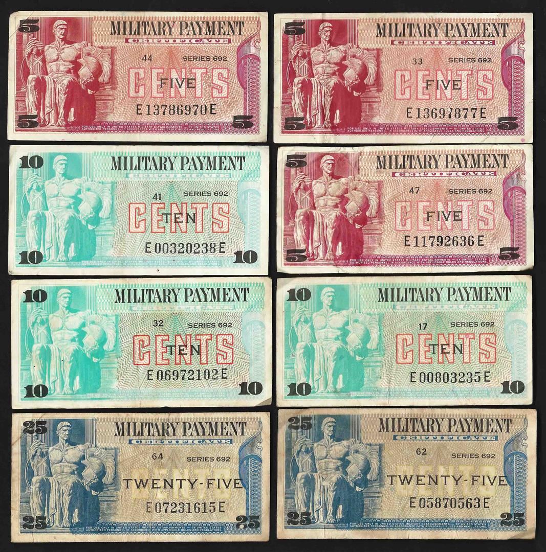 One Lot of (8) Assorted Military Payment Certificate Notes.