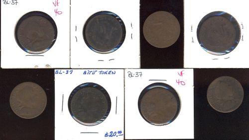 Lot of 8 Blacksmith tokens, all BL-37 W-658. Grades vary from VG to VF.