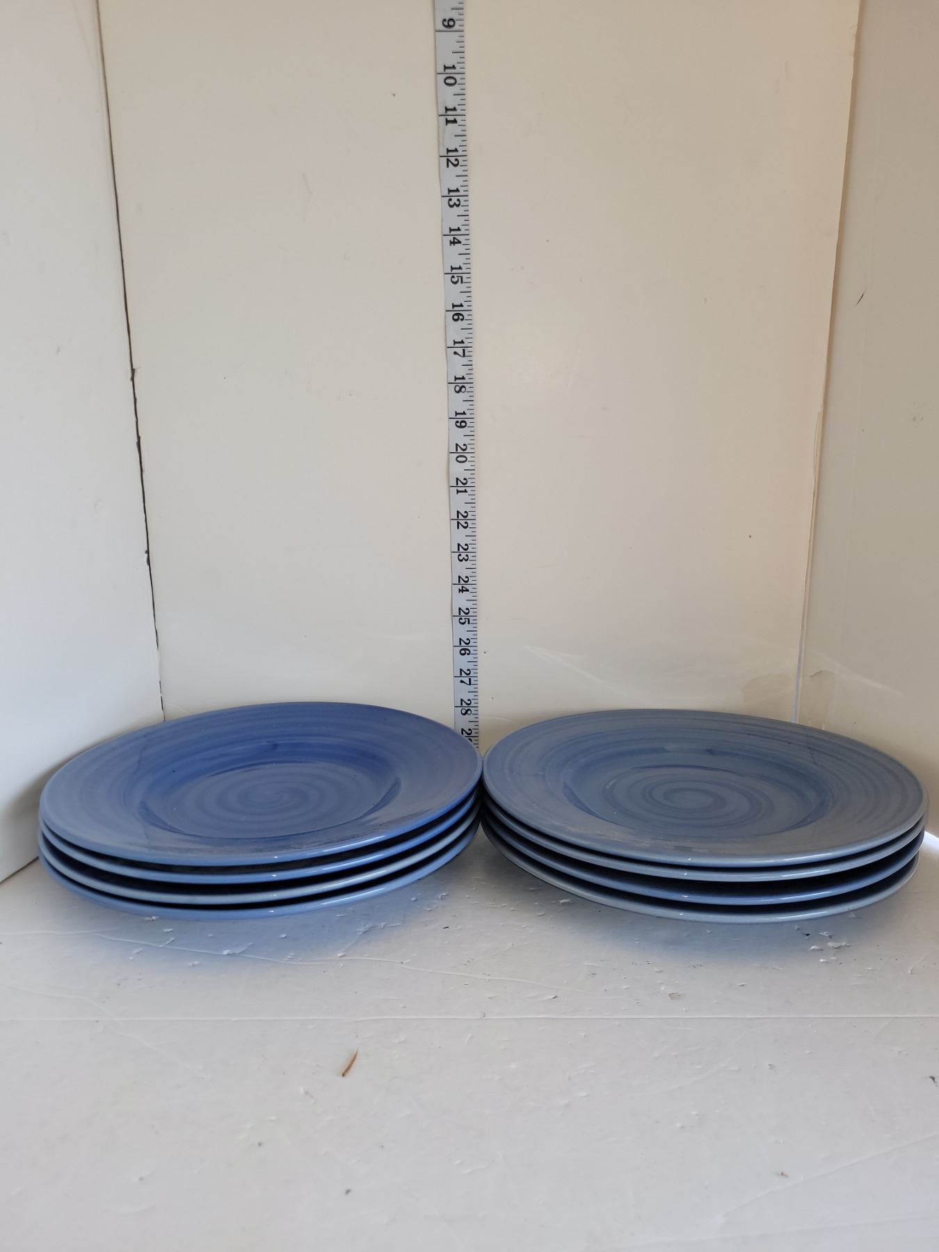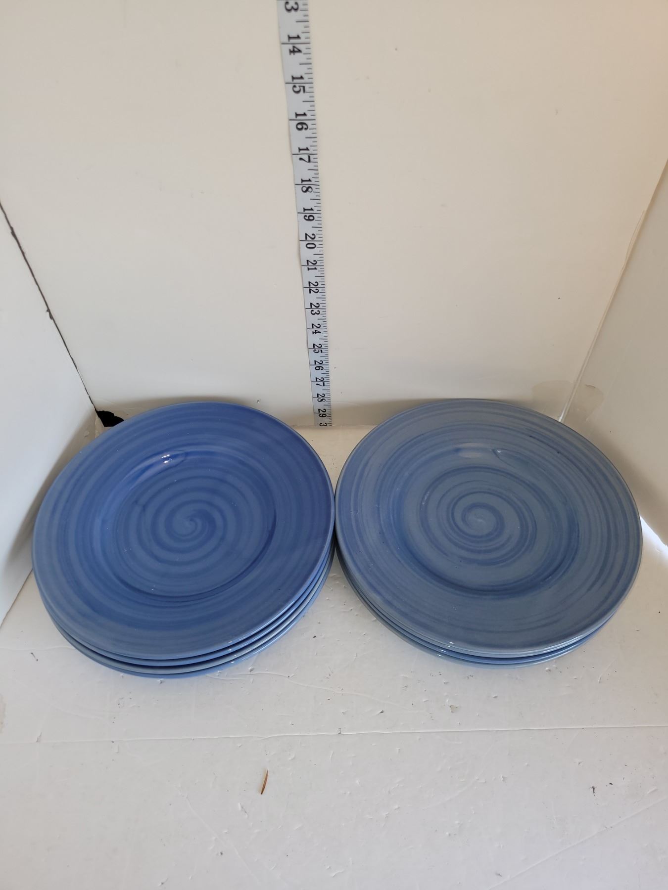 Lot of 8 Blue Stoneware Swirled Bread & Butter Plates
